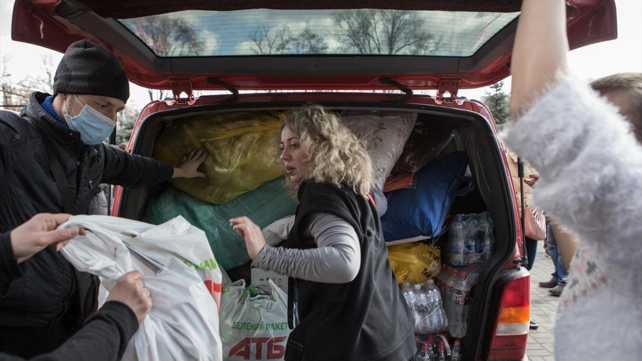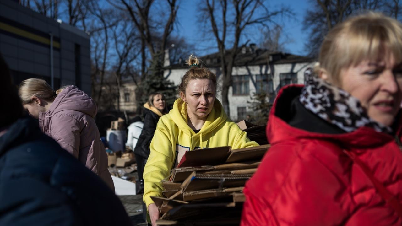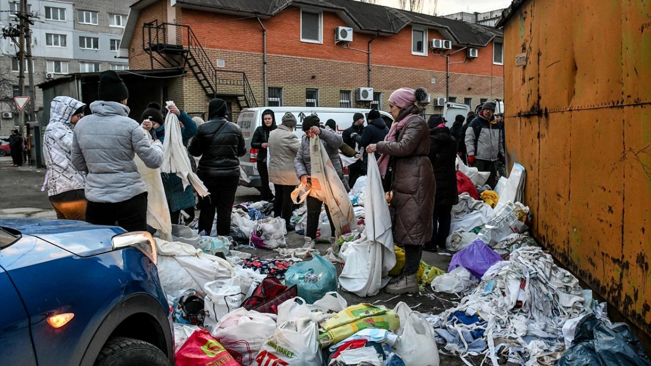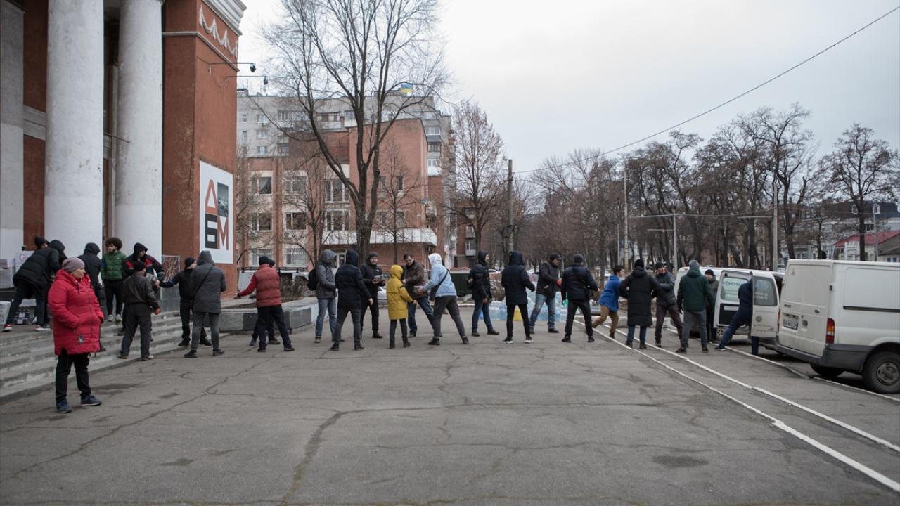 Dnipro sokaklarında siviller kendileri ve Ukrayna askerleri için yiyecek ve giyecek stoğu yapıyor.