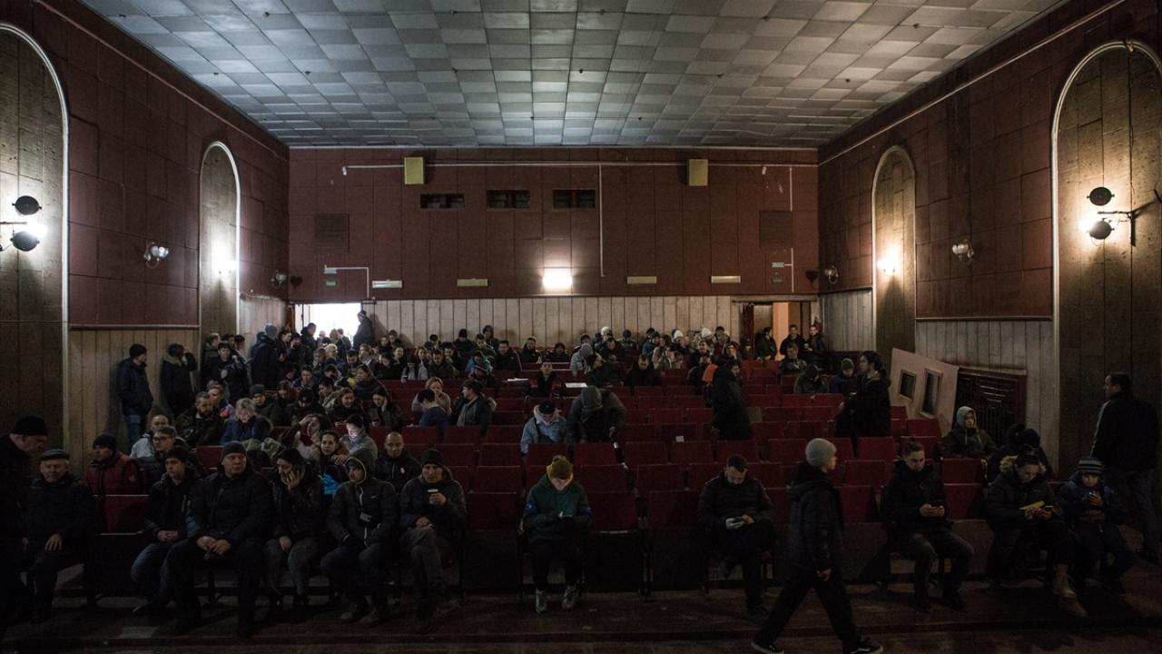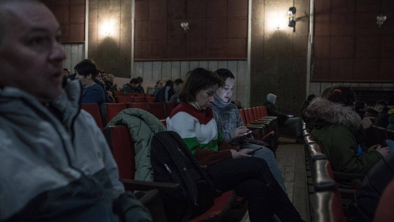 Dnipro`da dün gece de siren sesleri yükseldi. Dniprolular tiyatroya sığındı. O anlar fotoğraf karelerine yansıdı.