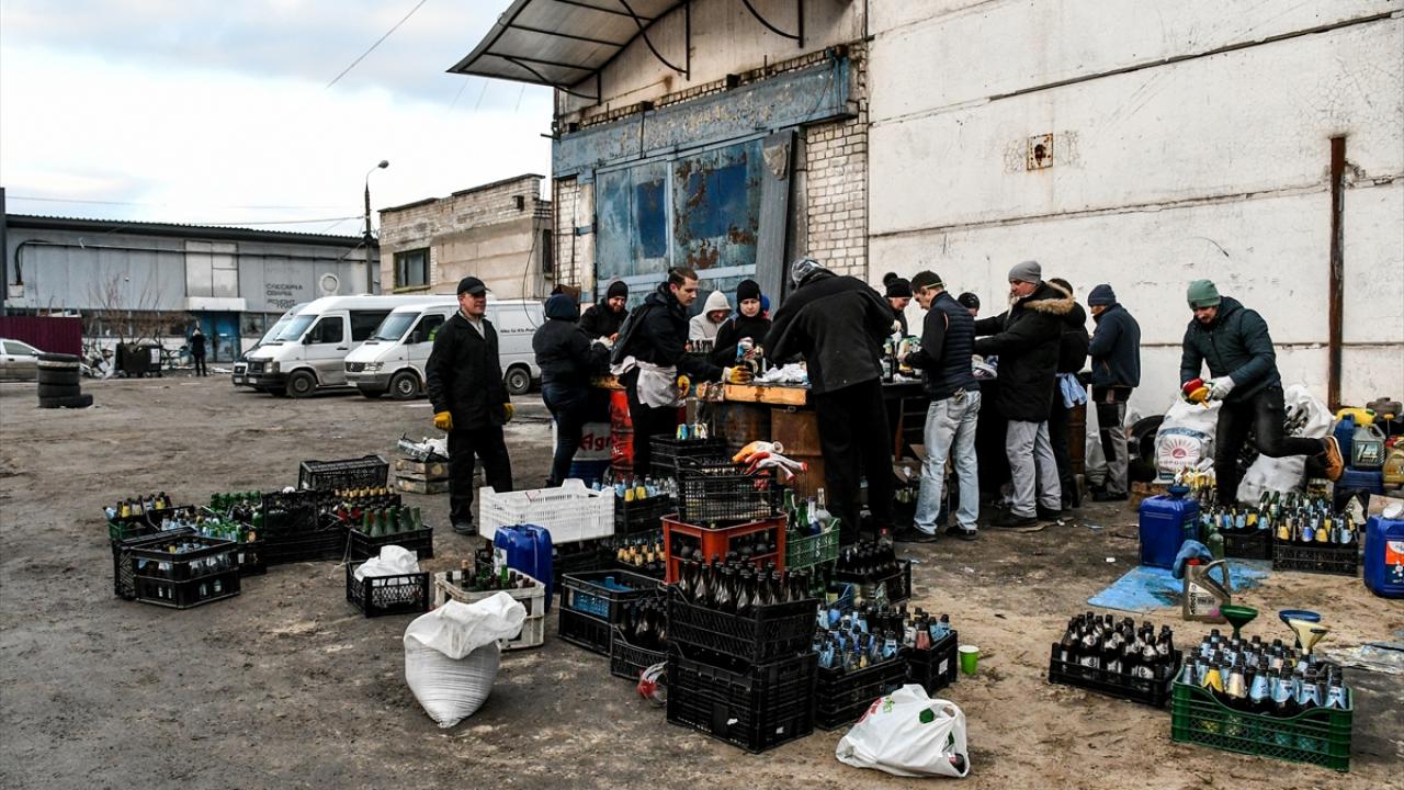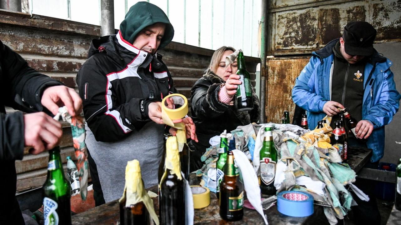 Rusya saldırısı altındaki Ukrayna`nın Zaporijya kentinde yaşayanlar ise kendi imkanlarıyla bir araya gelerek Rus güçlerinin kente girmesi olasılığına karşı molotof kokteyli hazırladı.