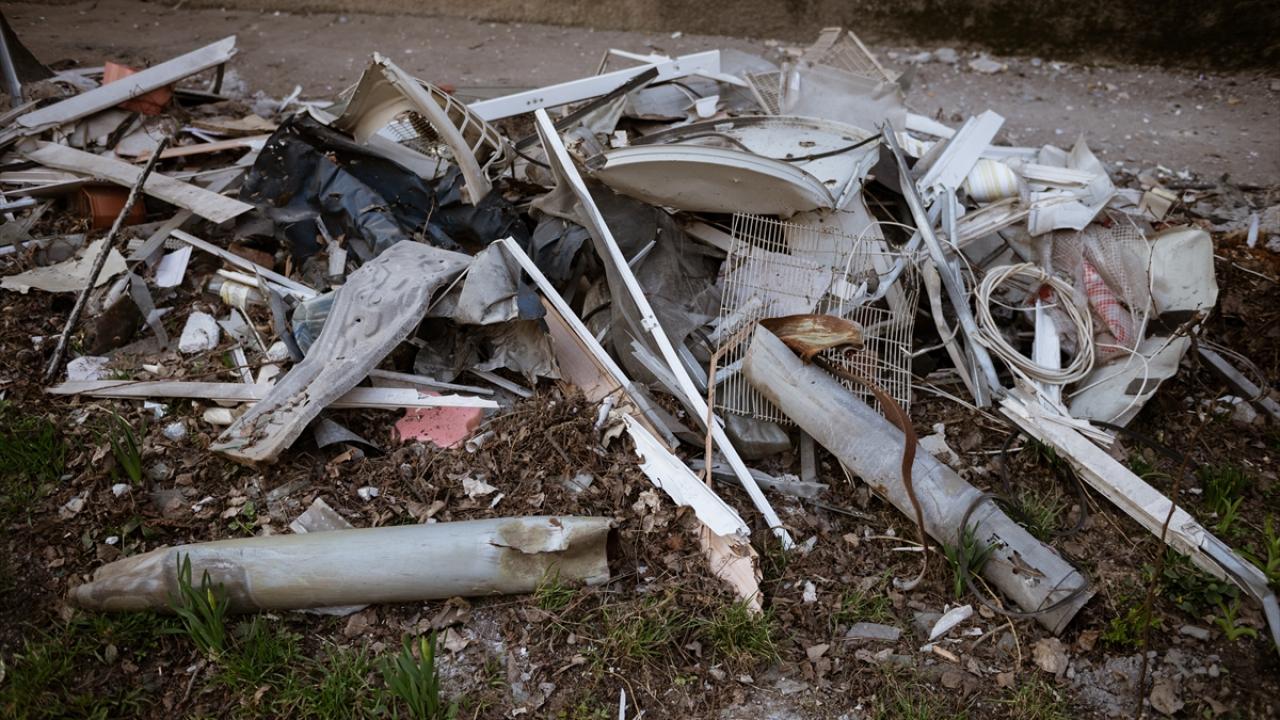 Bombardıman sonrasında çevrede füze parçaları görüntülendi.