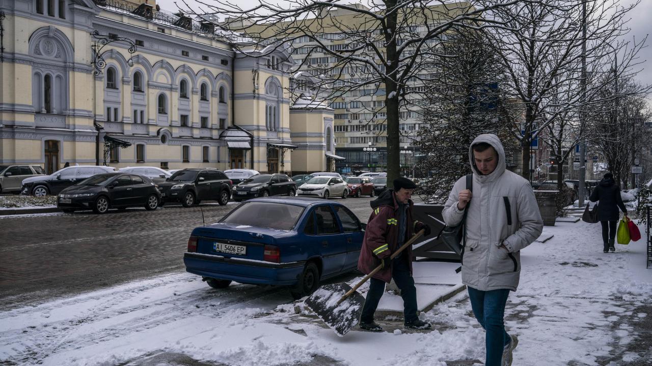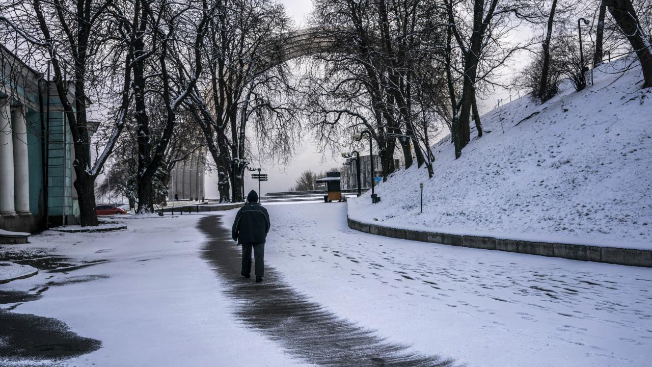 Rusya'nın, Ukrayna'ya karşı açtığı savaş devam ederken Ukrayna'nın başkenti Kiev'de kar yağdı. Kar yağışının ardından başkent sokakları beyaza büründü.