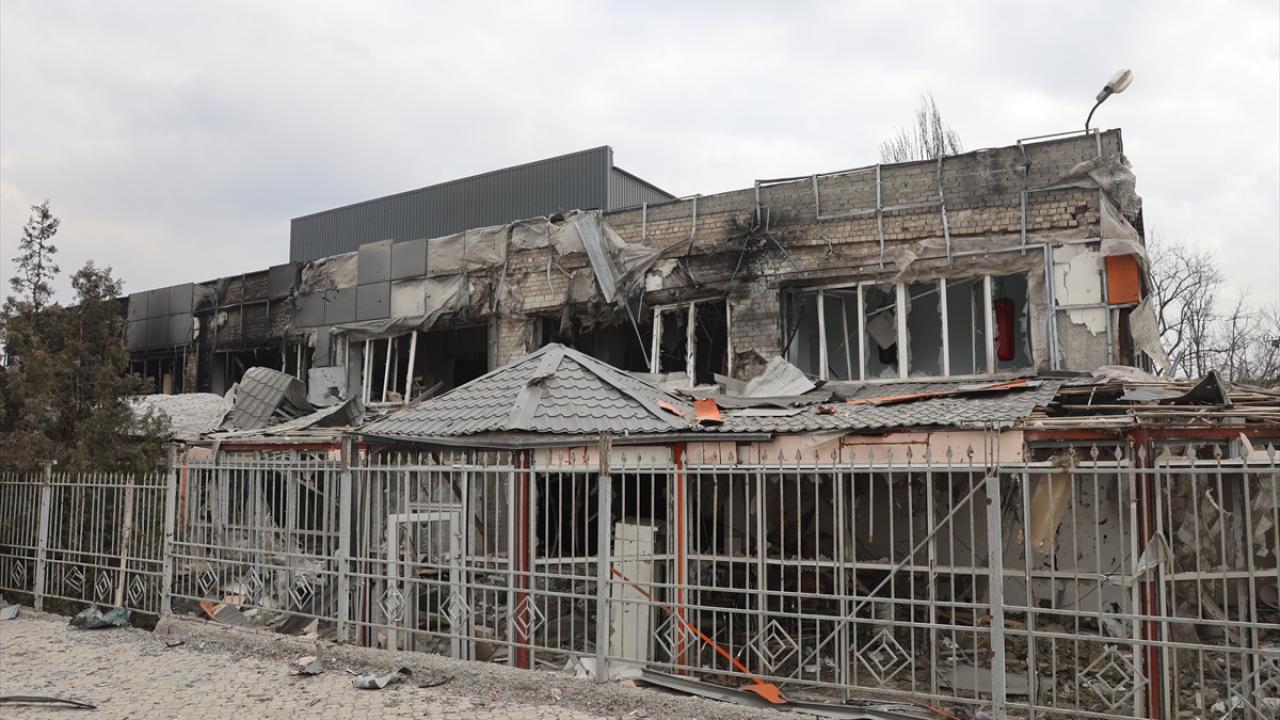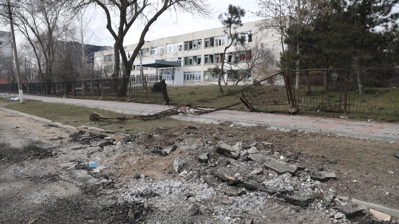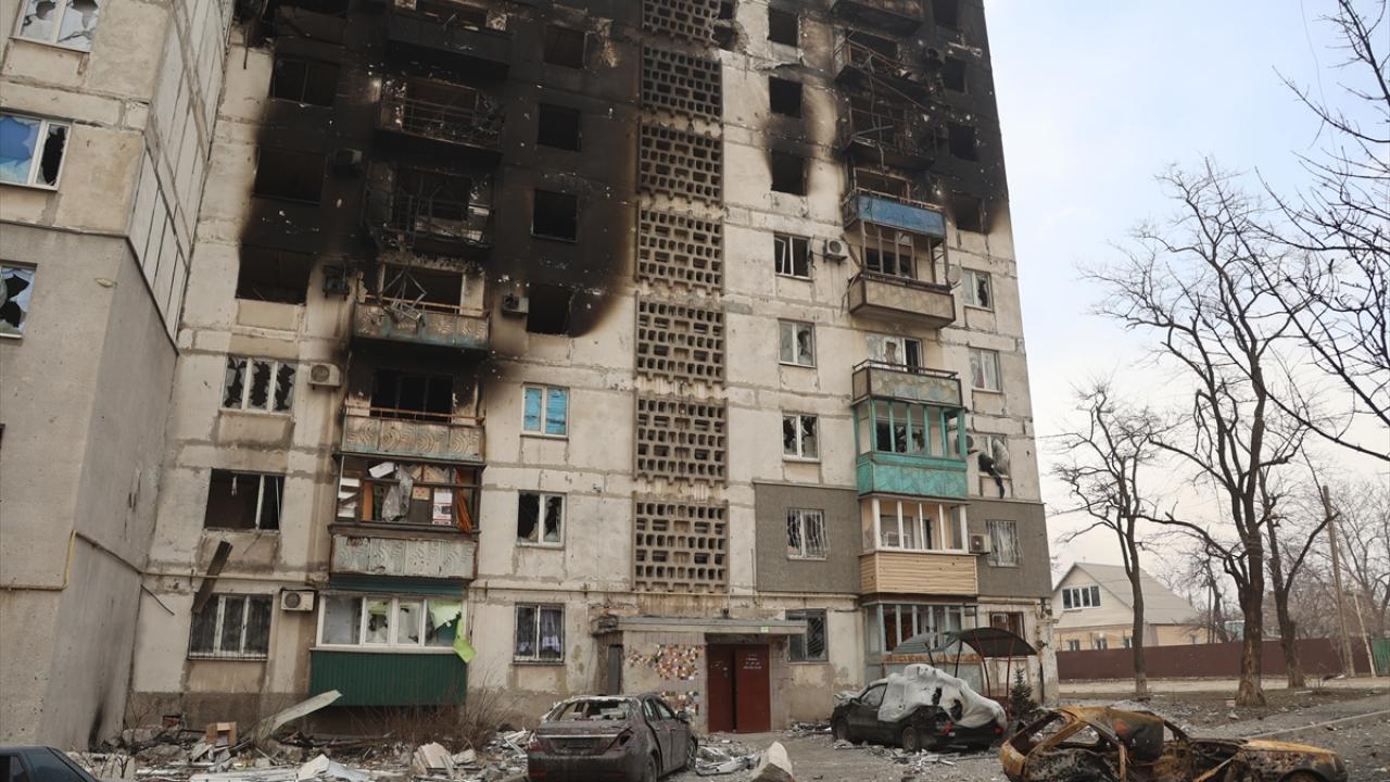 Rusya'nın saldırısı altındaki Ukrayna'nın Mariupol kenti merkezinde çatışmalar sonucu bir çok sivil ve askeri yapıların zarar gördüğü gözlendi.