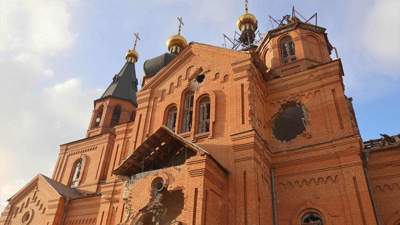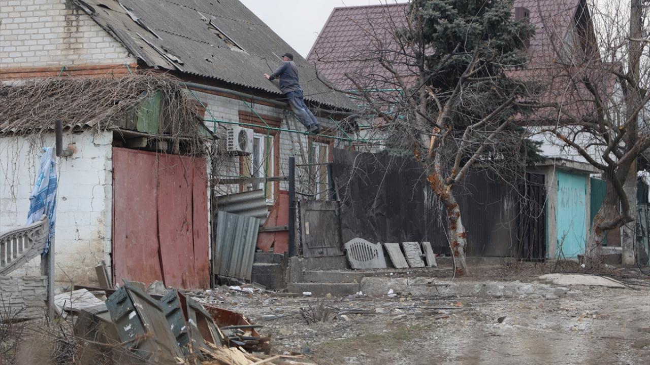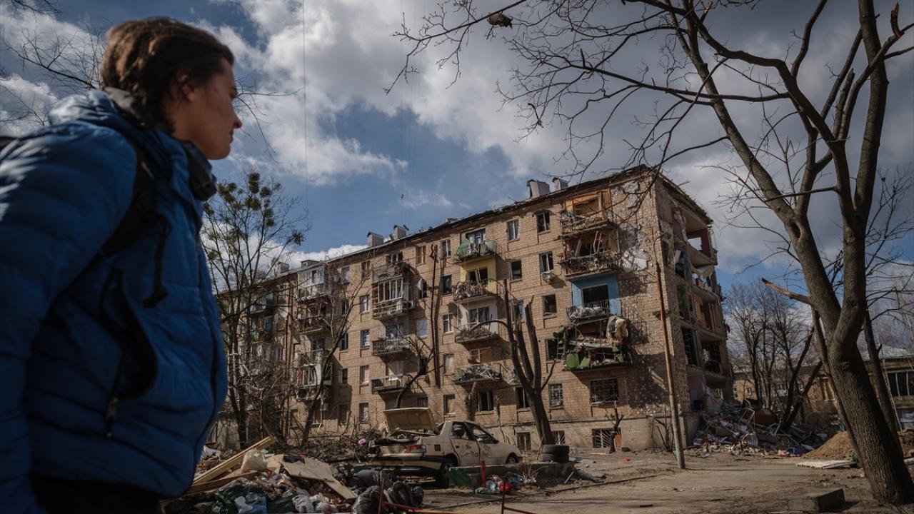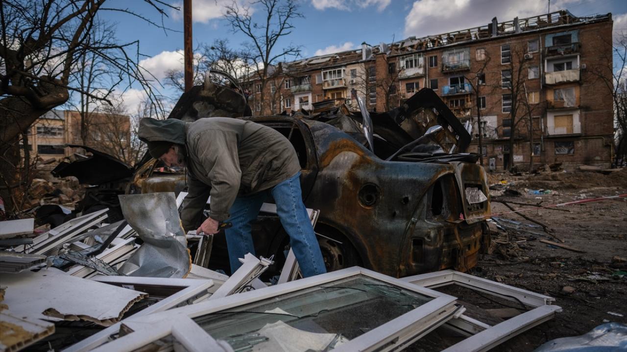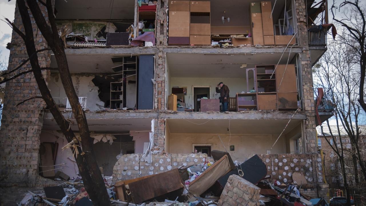 Rusya`nın saldırısı altındaki Ukrayna`nın başkenti Kiev`deki Vitryani Hory bölgesinde bazı evler, bombardıman sonucu hasar gördü.