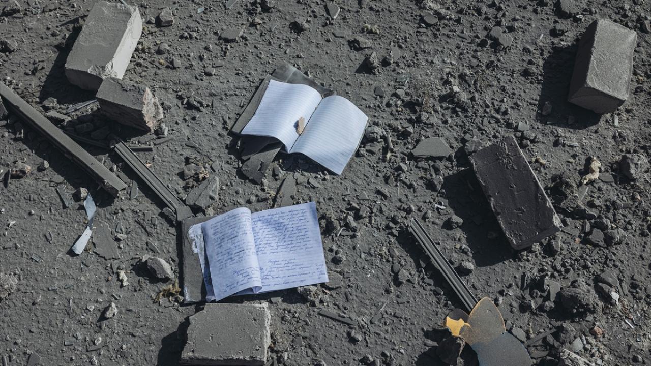 Fotoğrafta, Konstantinovka bölgesinde Rus güçlerince dün vurulan 6 No`lu okul görülüyor.