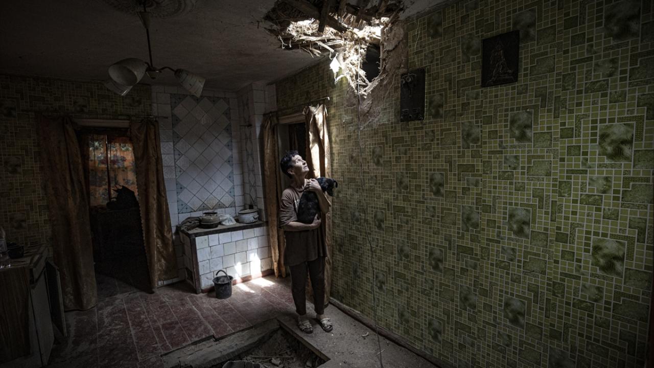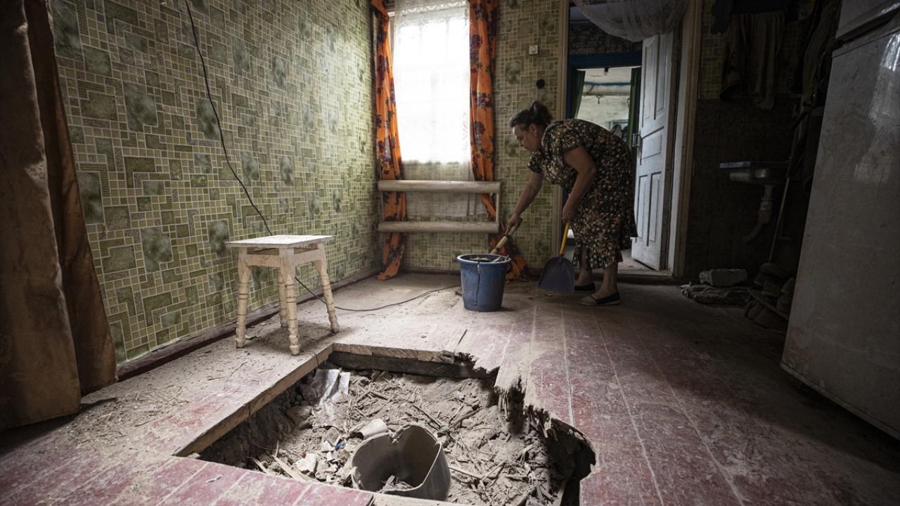 Rus güçlerince atılan füze evin çatısını delerek misafir odasına isabet etti.