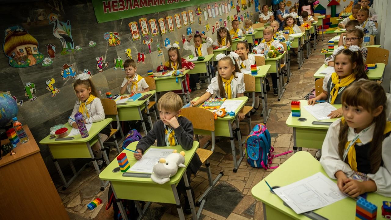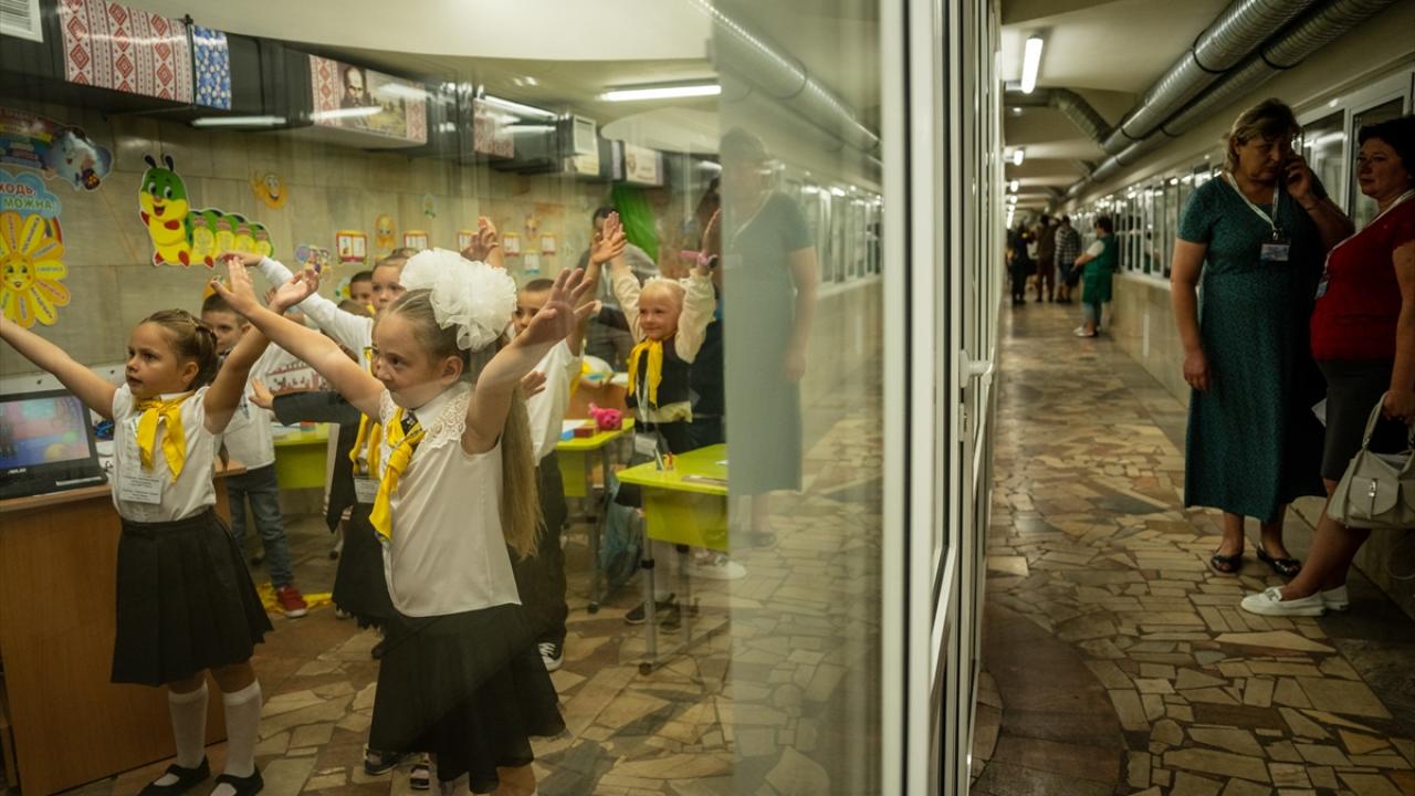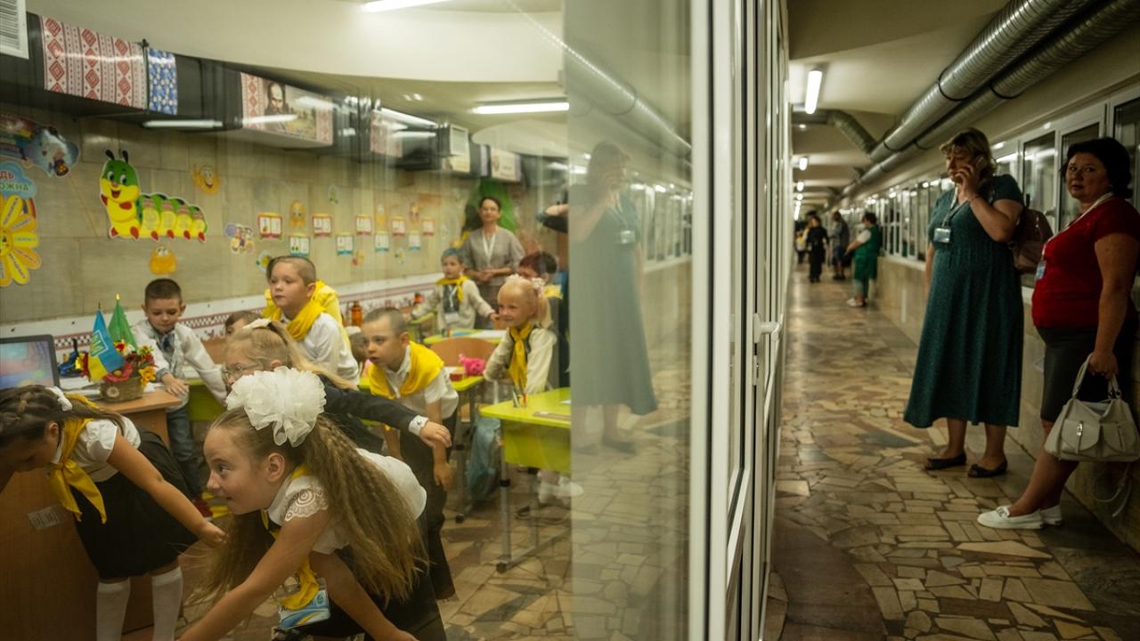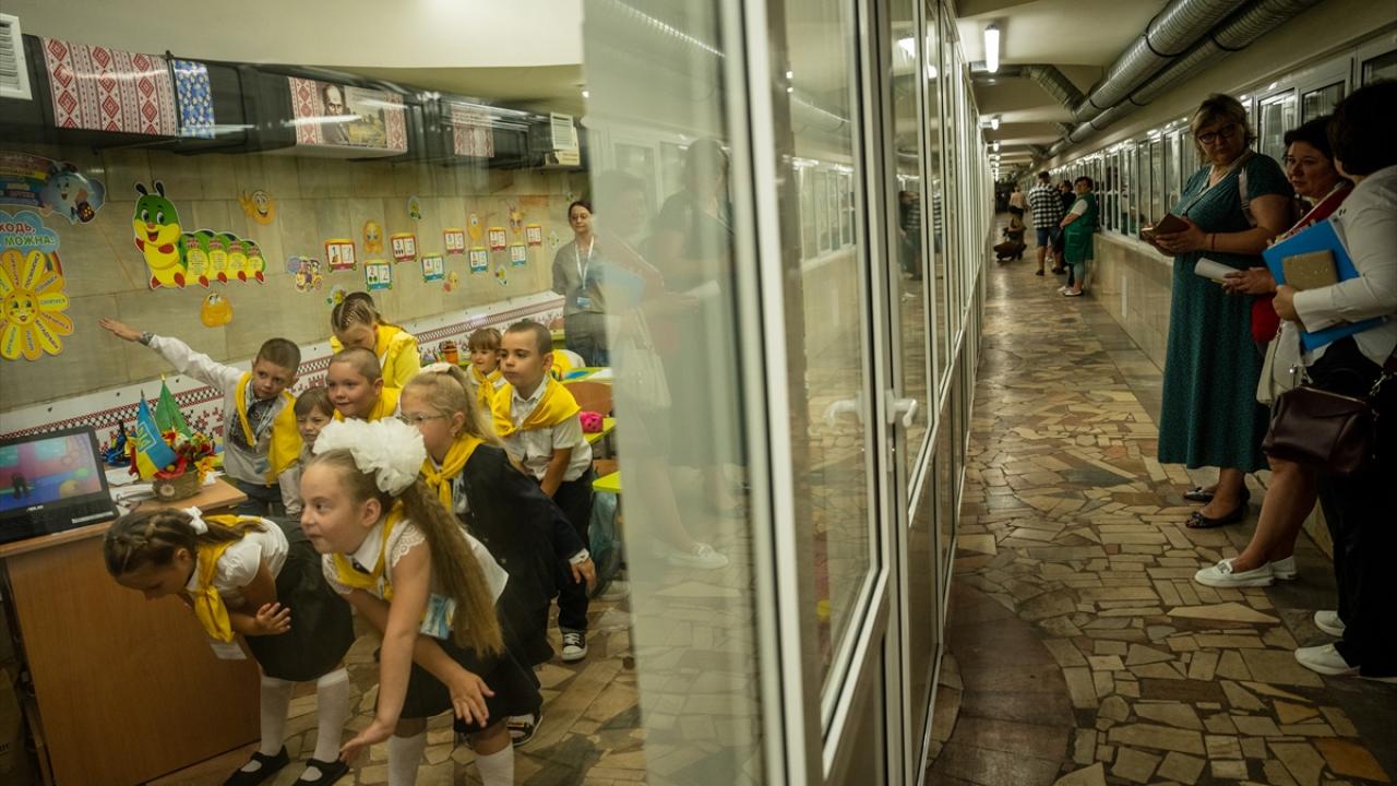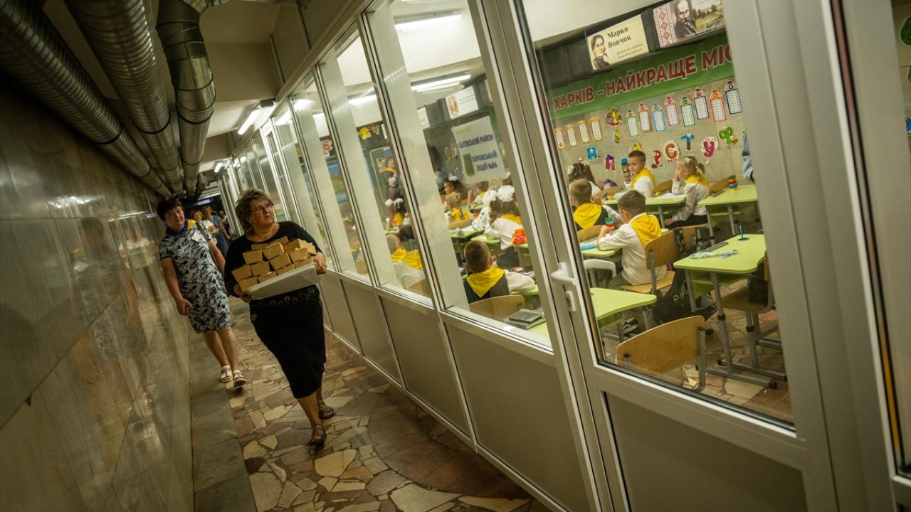 Rusya ve Ukrayna arasındaki savaş devam ederken, öğrenciler Ukrayna'nın Harkiv Obastı'nda bulunan bir metroda okulun ilk gününe başladı.