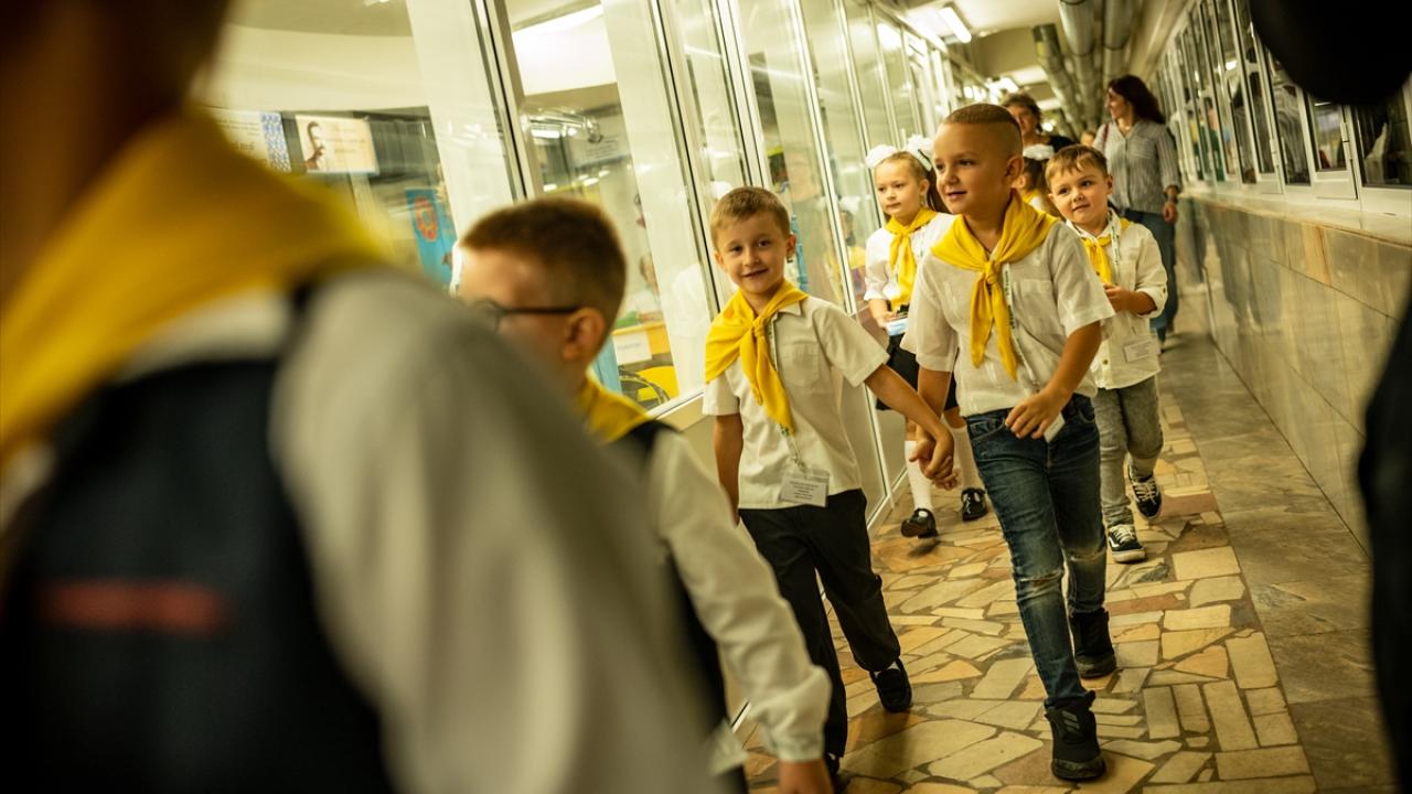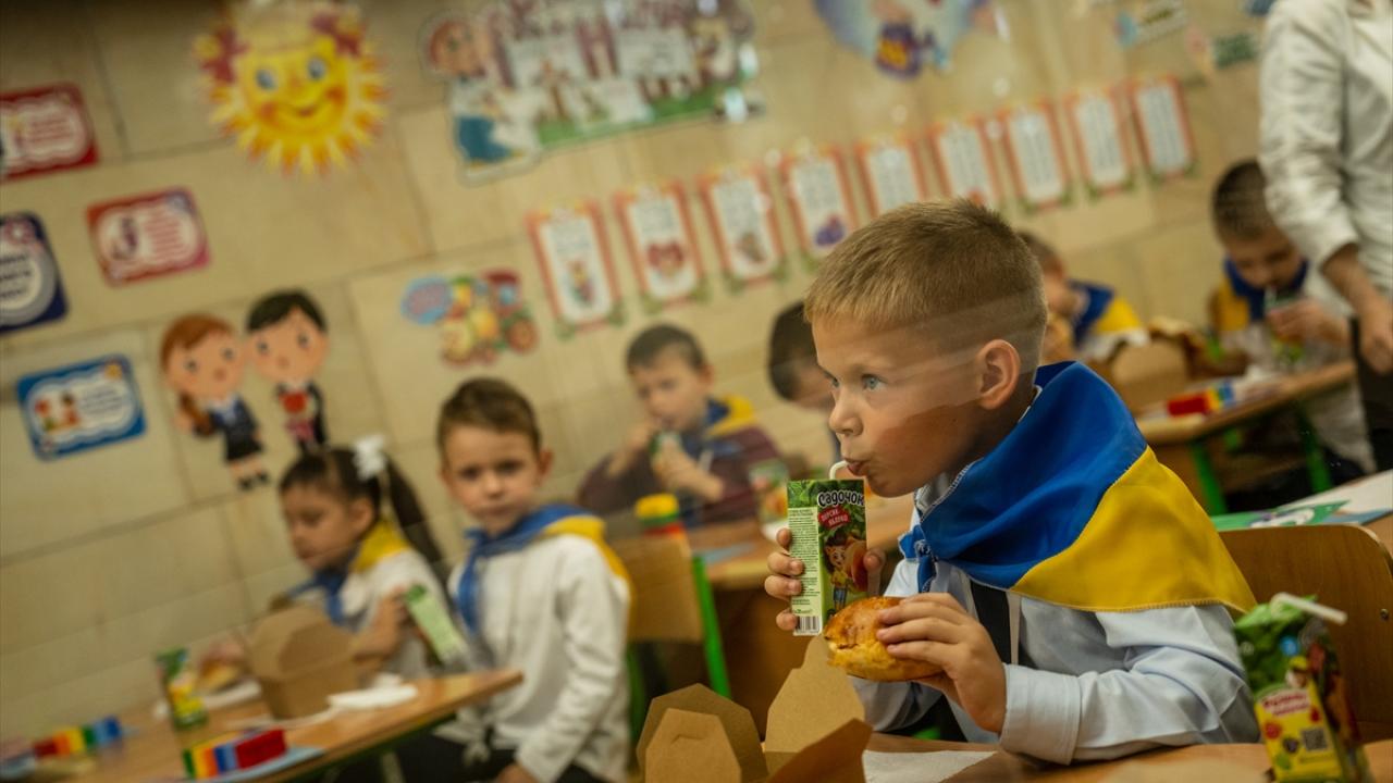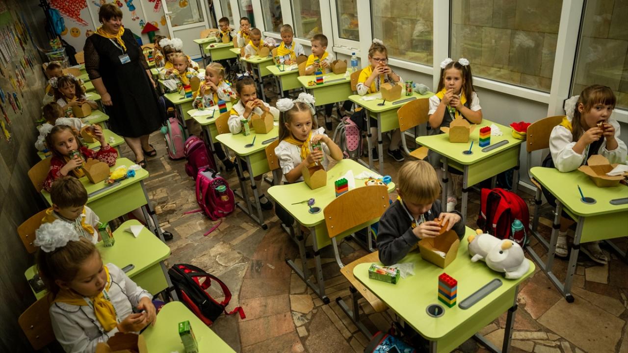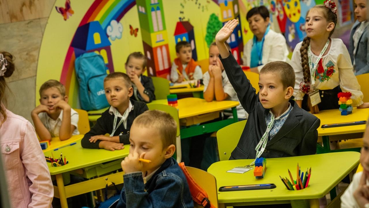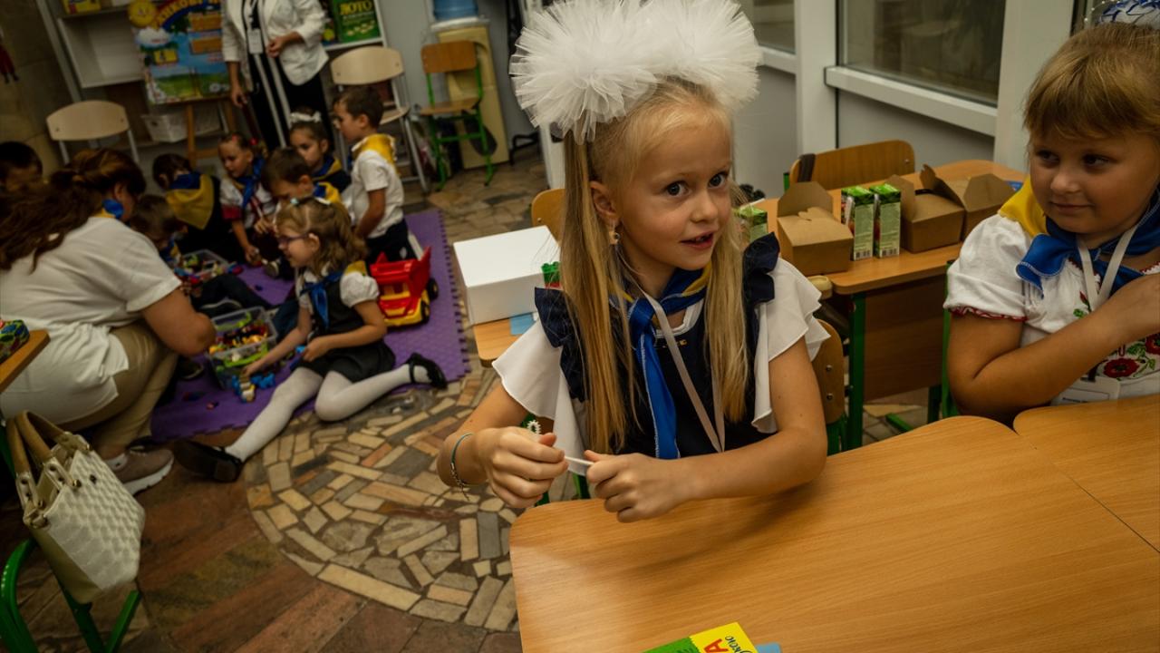 Rusya ve Ukrayna arasındaki savaş devam ederken, öğrenciler Ukrayna'nın Harkiv Obastı'nda bulunan bir metroda okulun ilk gününe başladı.