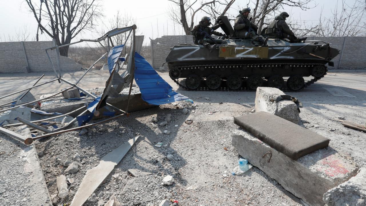 Rus ordusuna ait tankın Mariupol`den geçtiği anlar.