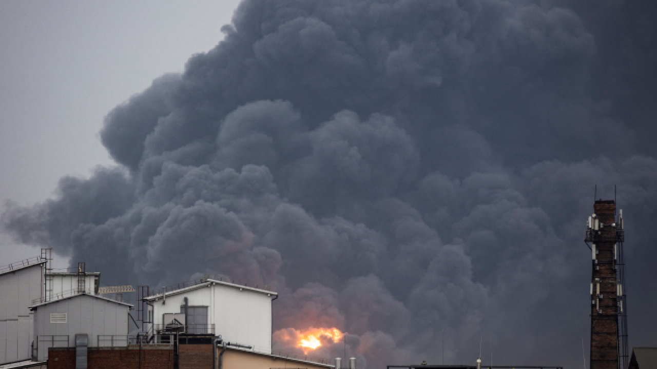 Ukrayna-Polonya sınırına yakın şehir Lviv`de bugün 3 patlama meydana geldi. Patlamanın ardından dumanlar yükseldi.
