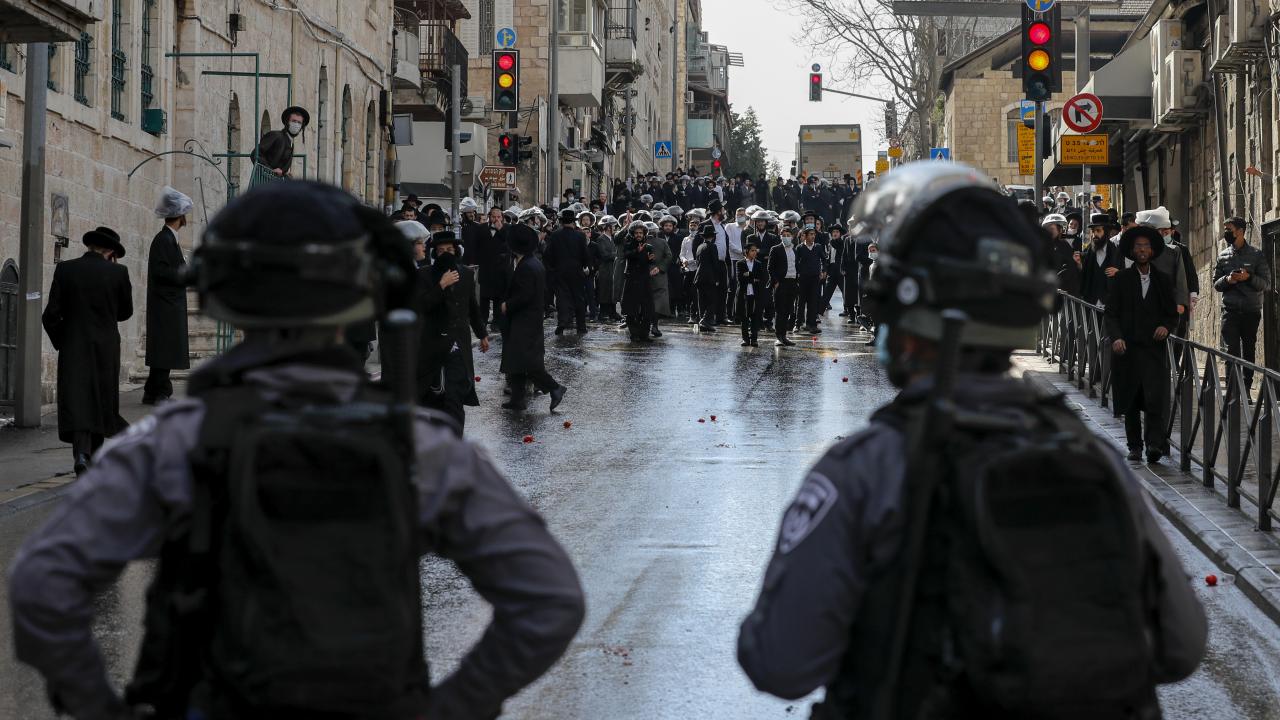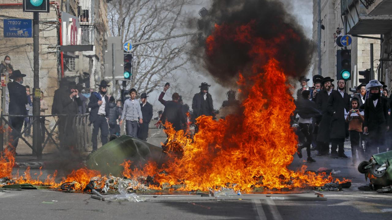 Ultra-Ortodoks Yahudiler, Batı Kudüs`teki Mea Shearim mahallesinde ülkede 27 Aralık 2020`den bu yana devam eden karantinayı protesto etti.