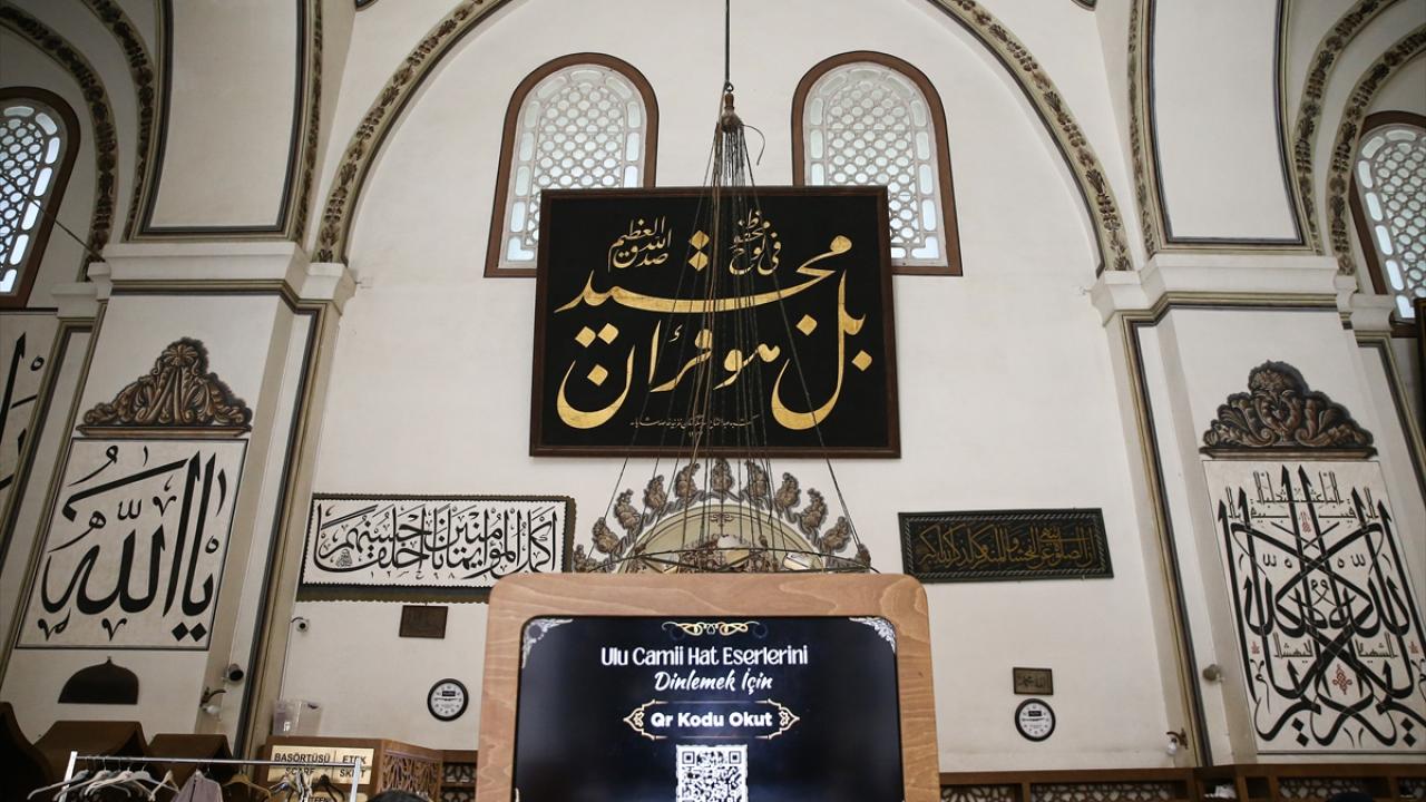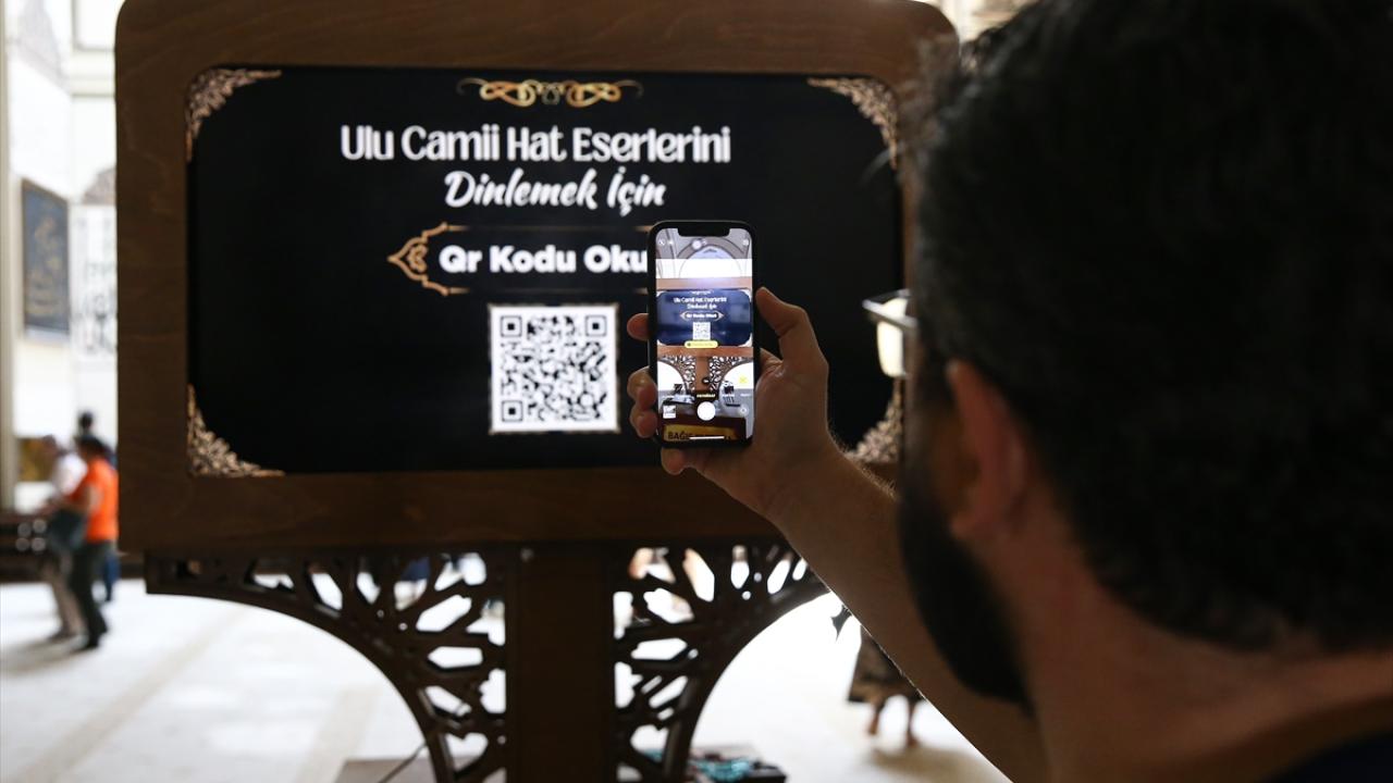 Bursa'da erken dönem Osmanlı sanatının tüm özelliklerini yansıtan ve Türk-İslam dünyasının en önemli mabetleri arasında yer alan Ulu Camii'yi ziyaret eden yerli turistler, camideki ekranlarda yer alan karekodları akıllı telefonlarıyla okutarak hat eserlerinin anlamlarına kolayca ulaşabiliyor.