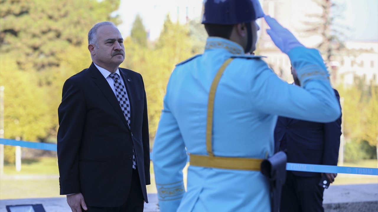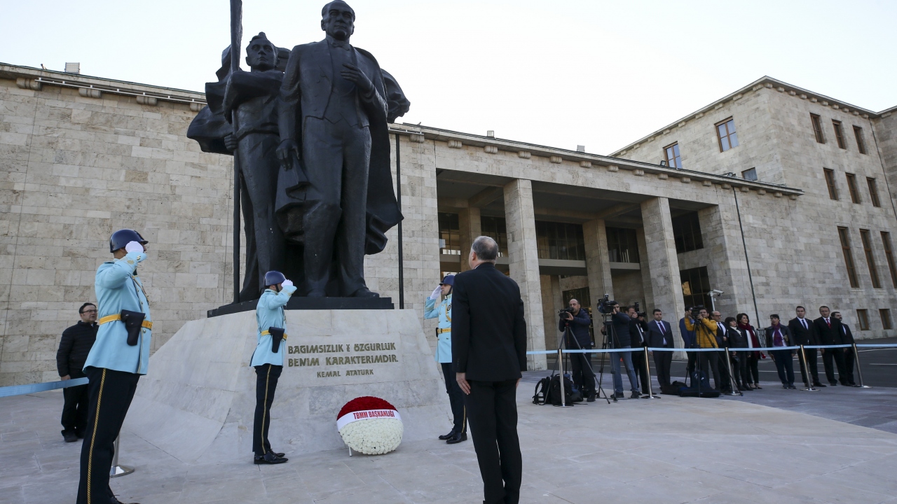 Meclis Başkan Vekili Levent Gök, Atatürk anıtına, kırmızı beyaz karanfillerden oluşan çelenk bıraktı.