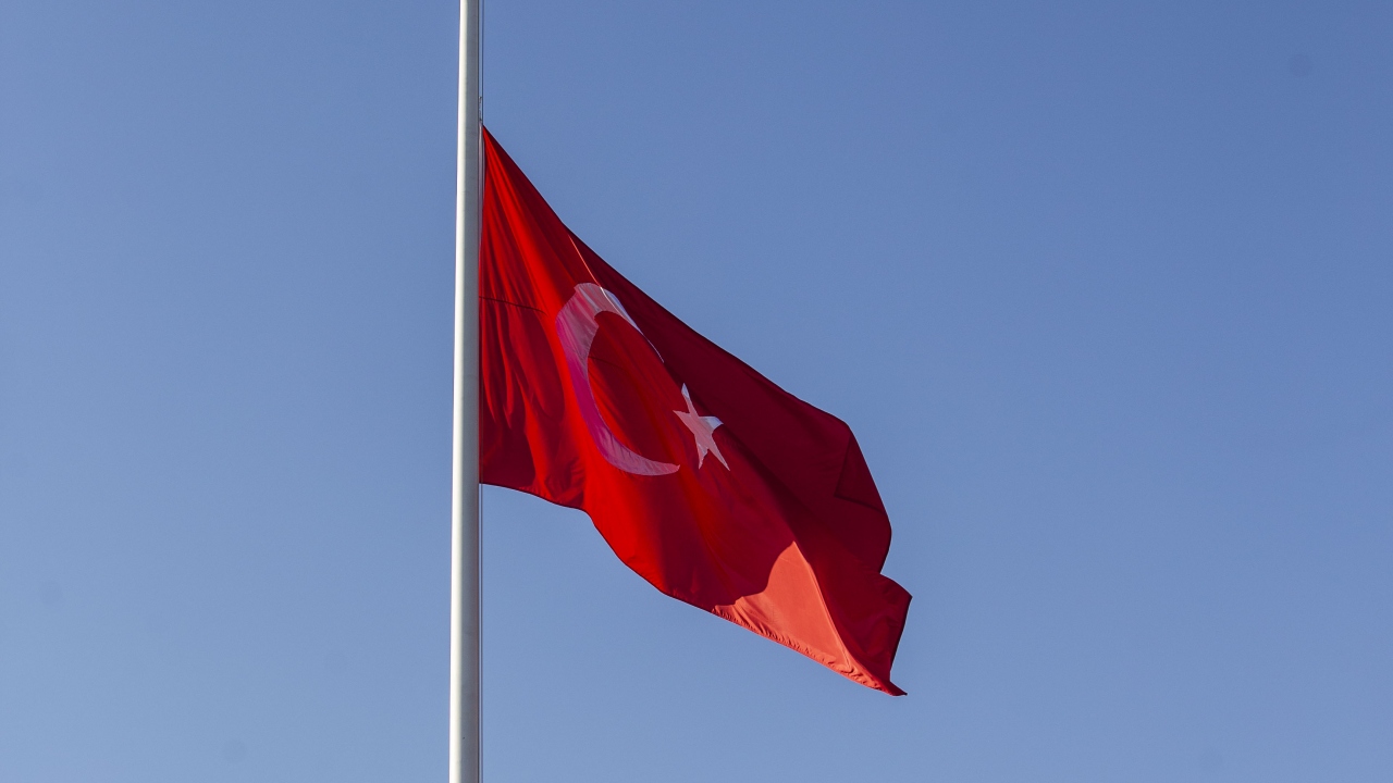 Saygı duruşu sırasında gönderdeki Türk bayrağı yarıya indirildi.