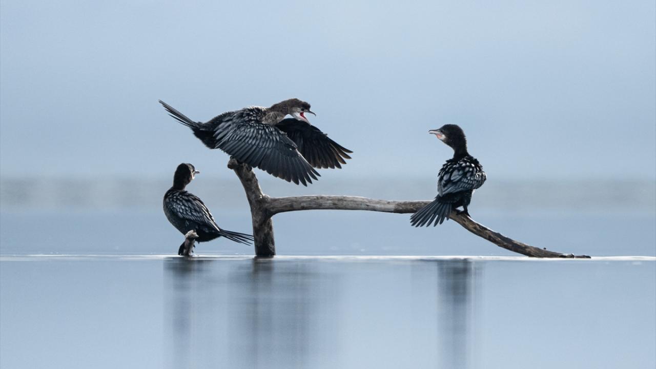 Türkiye’de görülen üç karabatak türünden biri olan küçük karabataklar, göl, nehir ve deniz kıyılarında yaşamlarını sürdürüyor.