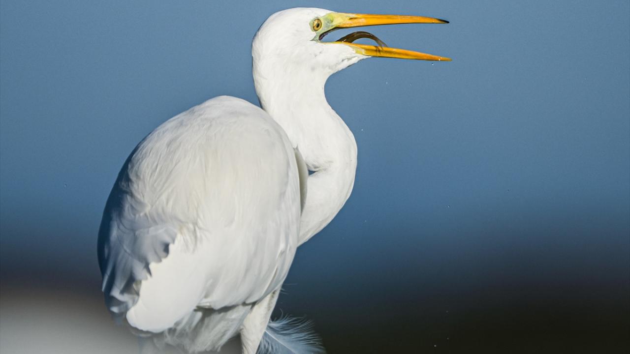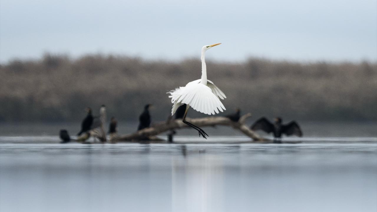 Uluabat Gölü’nde kışlayan balıkçıllar
