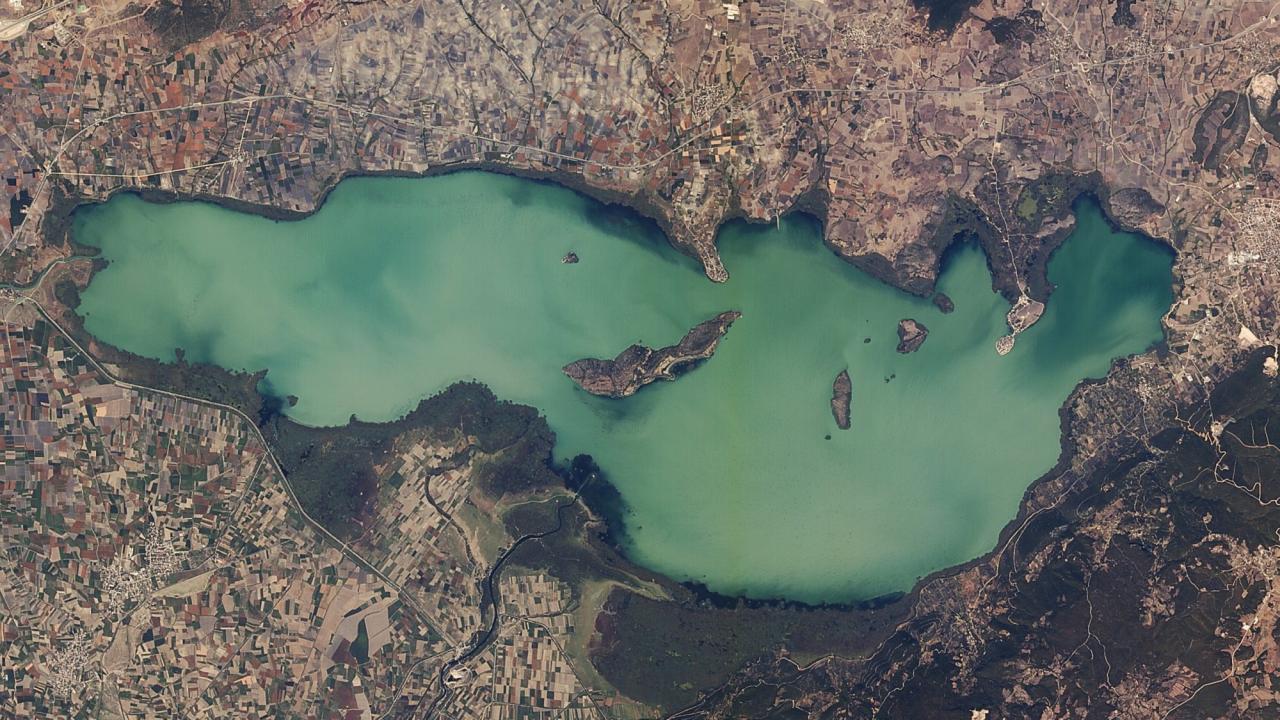 Tarımsal sulama, kuraklık ve iklim krizi nedeniyle gölde su seviyesinin düşmesine bağlı olarak yaşanan çekilme, uydu görüntülerine yansıdı.
