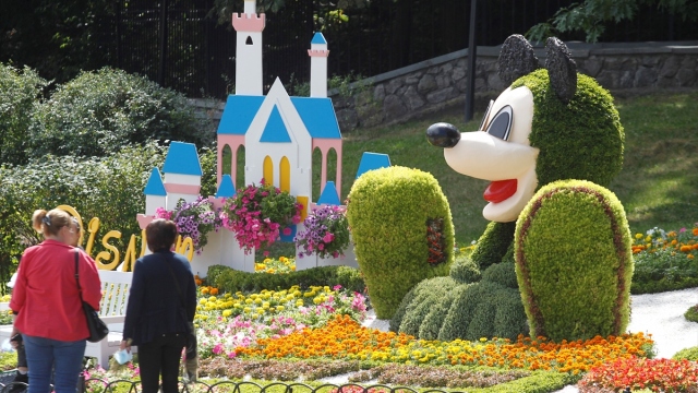 Ukrayna'da çiçeklerle yapılan çizgi film karakterlerinin heykelleri sergileniyor