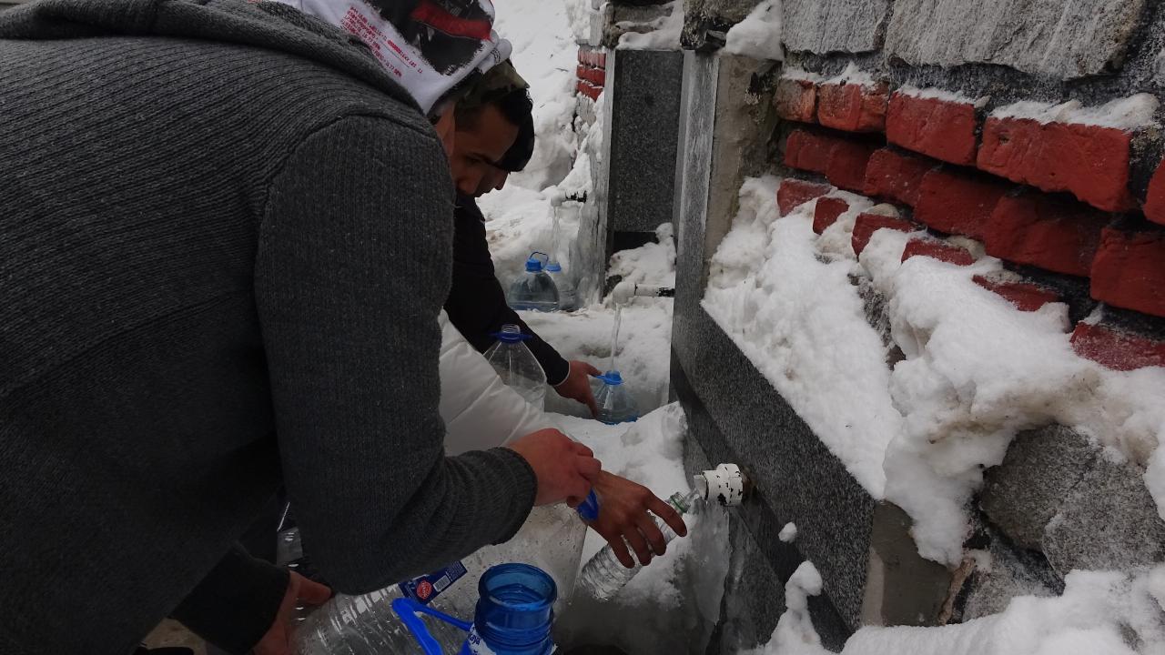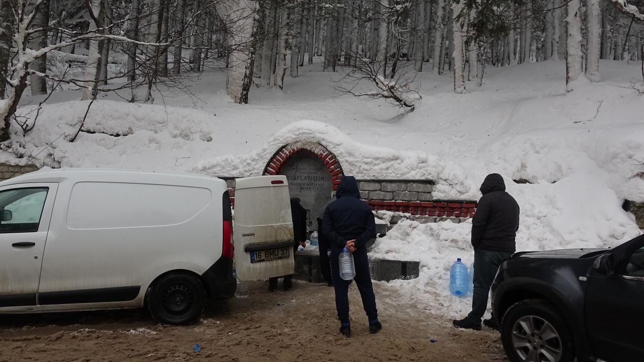 Bursa Uludağ'daki oteller bölgesinde, şehir merkezine 30 kilometre uzaklıkta olan çeşmeden su doldurmak isteyen vatandaşlar, dondurucu soğukta saatlerce sıra bekliyor.