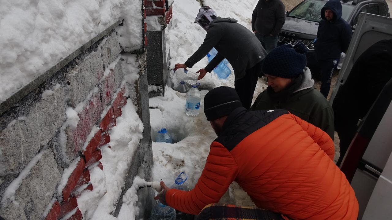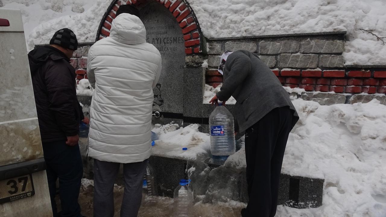 Bu suyun lezzet ve kalitesini bilenler bidonlarını kapıp, eksi 10 dereceyi bulan soğukta saatlerce su doldurmak için bekliyor.