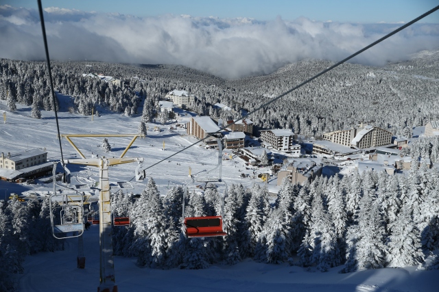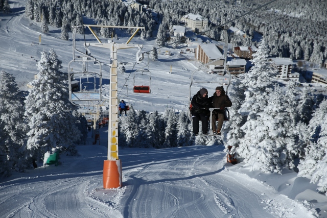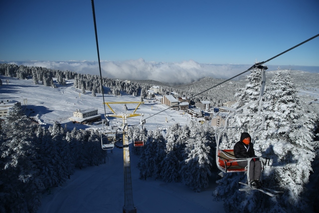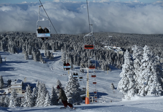 Kış turizminin önemli merkezlerinden Uludağ'a teleferikle ulaşanlar ile Oteller Bölgesi'nden telesiyej kullanarak zirveye çıkanlar, doğa ve karın sunduğu eşsiz manzaranın keyfini çıkarıyor.