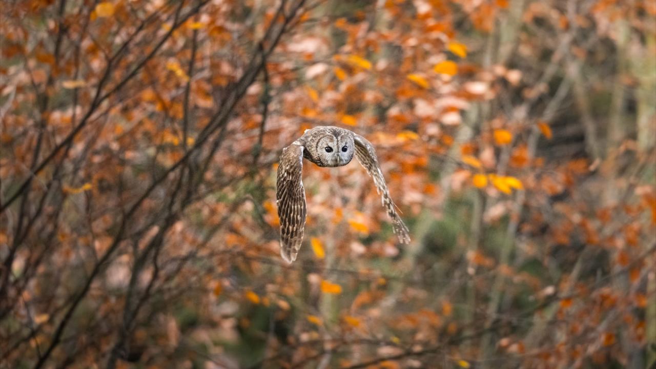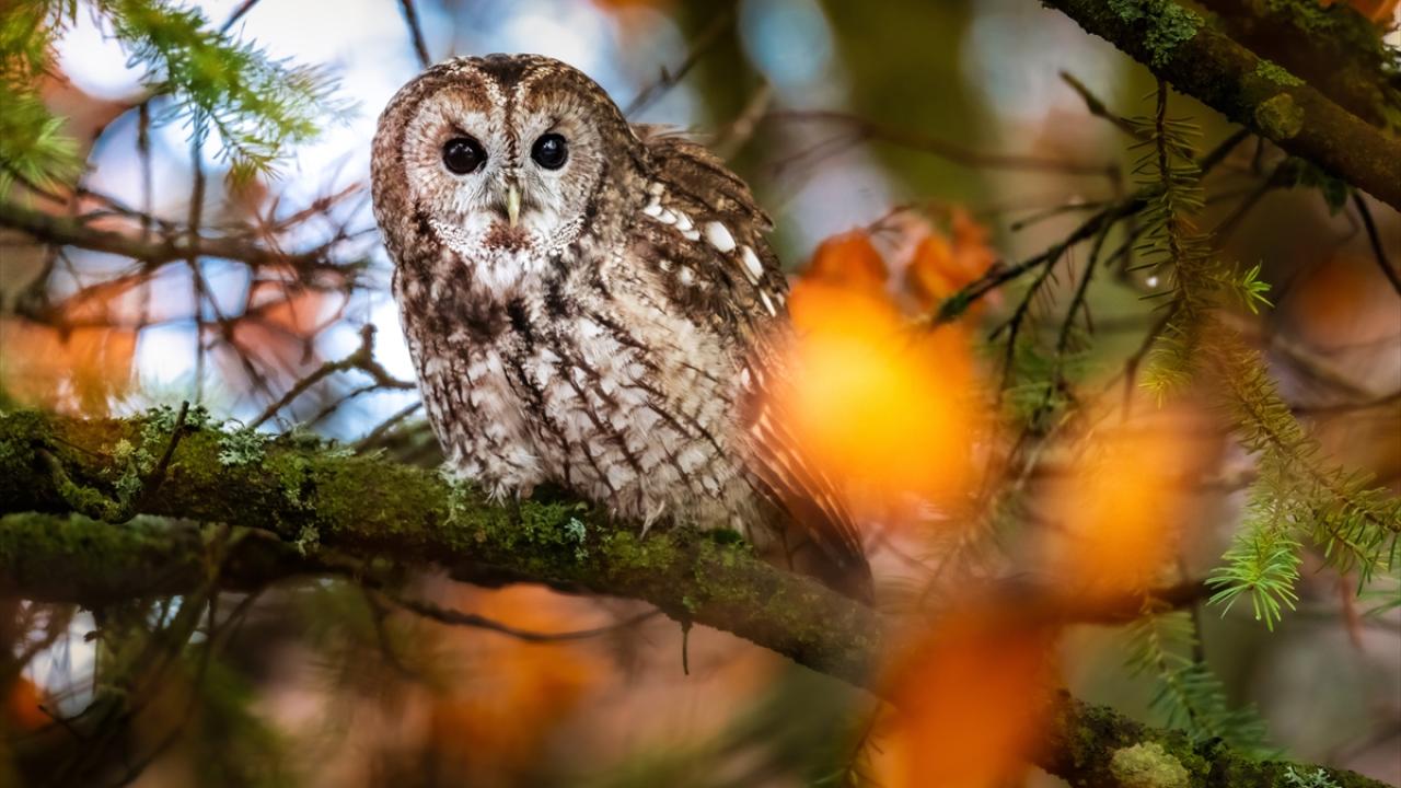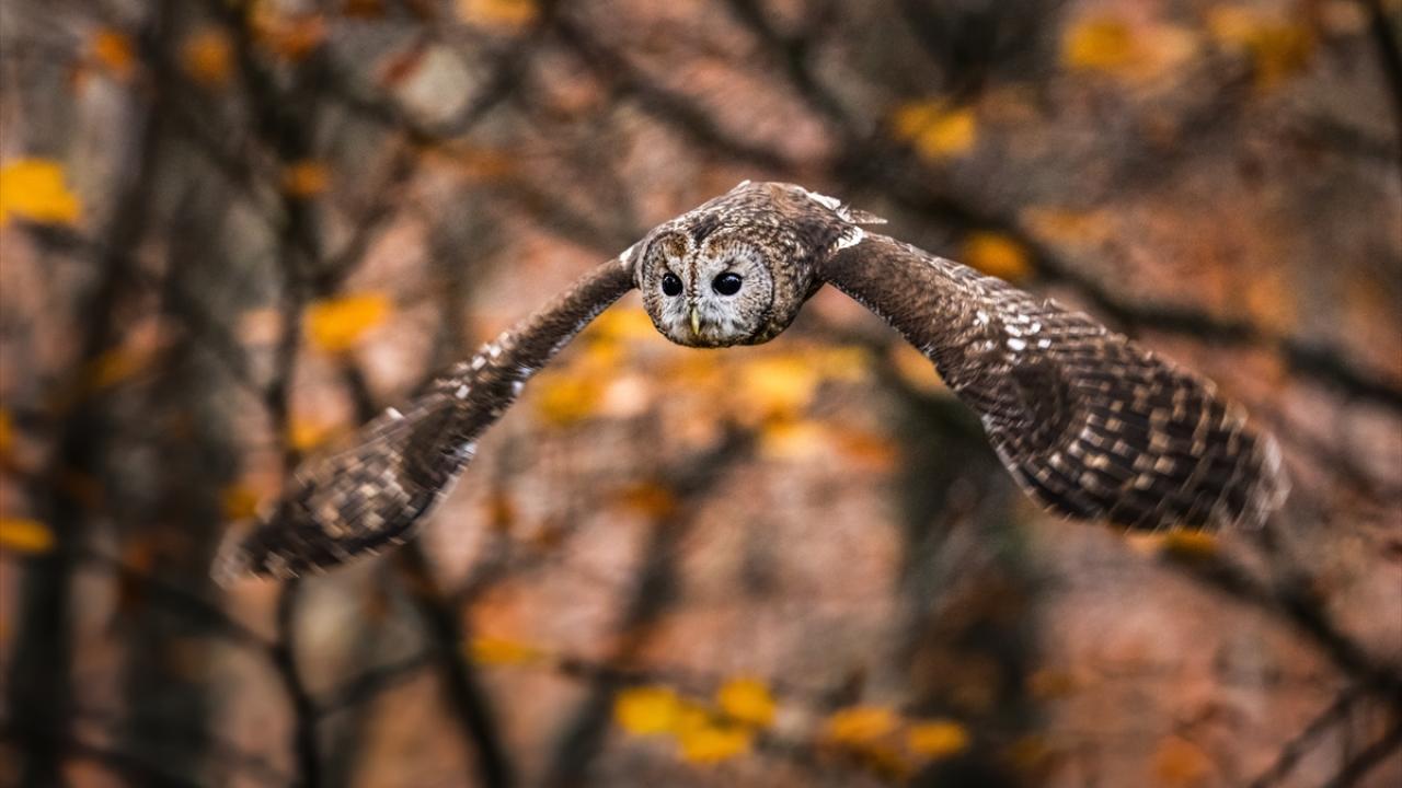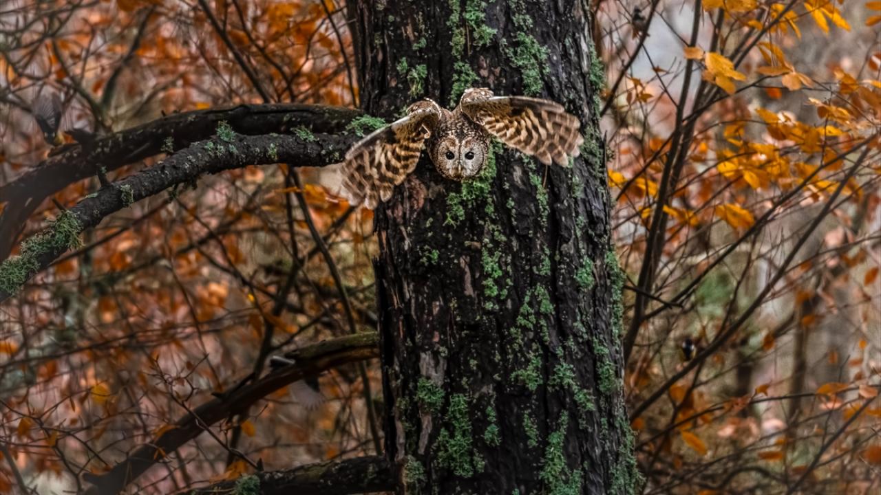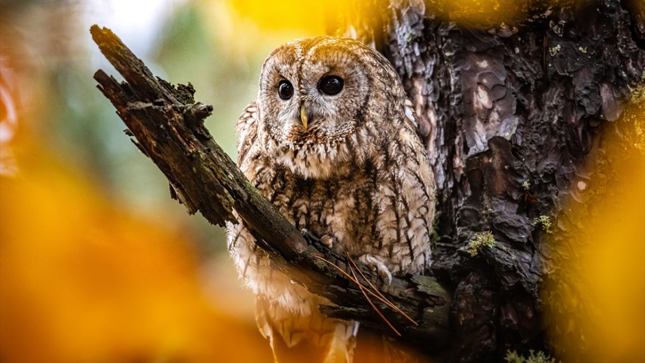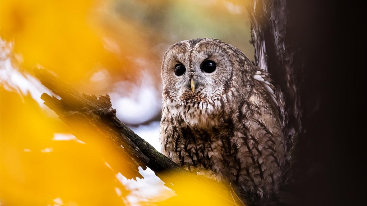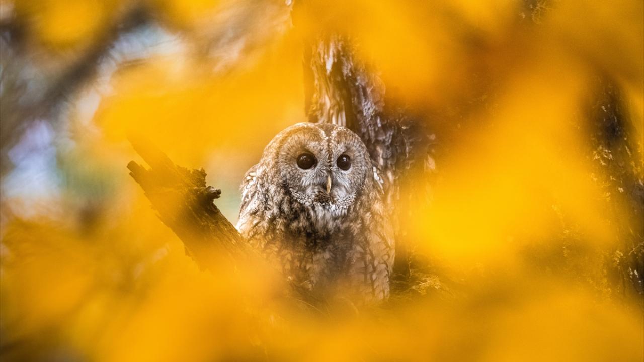 Bursa Uludağ'da sonbaharda ağaçların sararan yaprakları arasında dağın yerleşik türlerinden olan Alaca Baykuş görüntülendi.