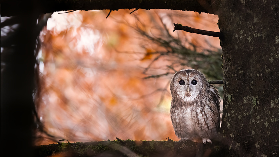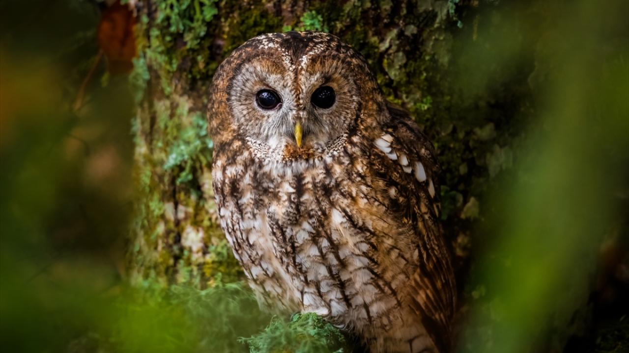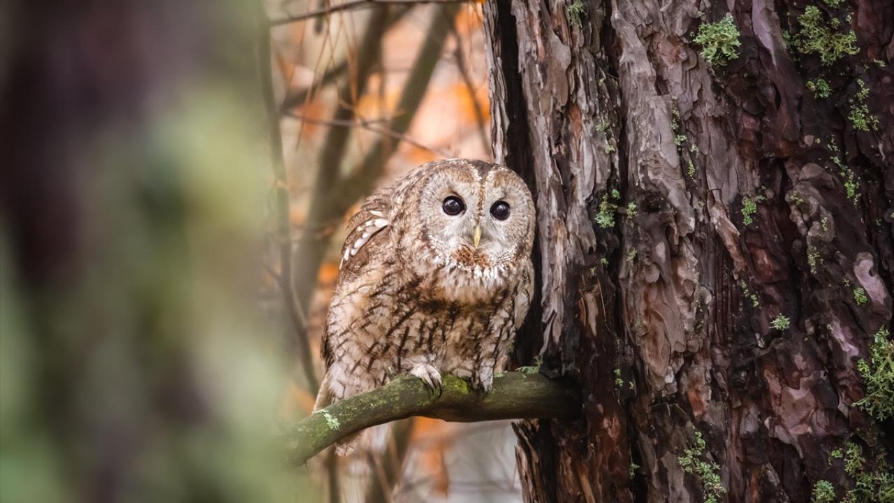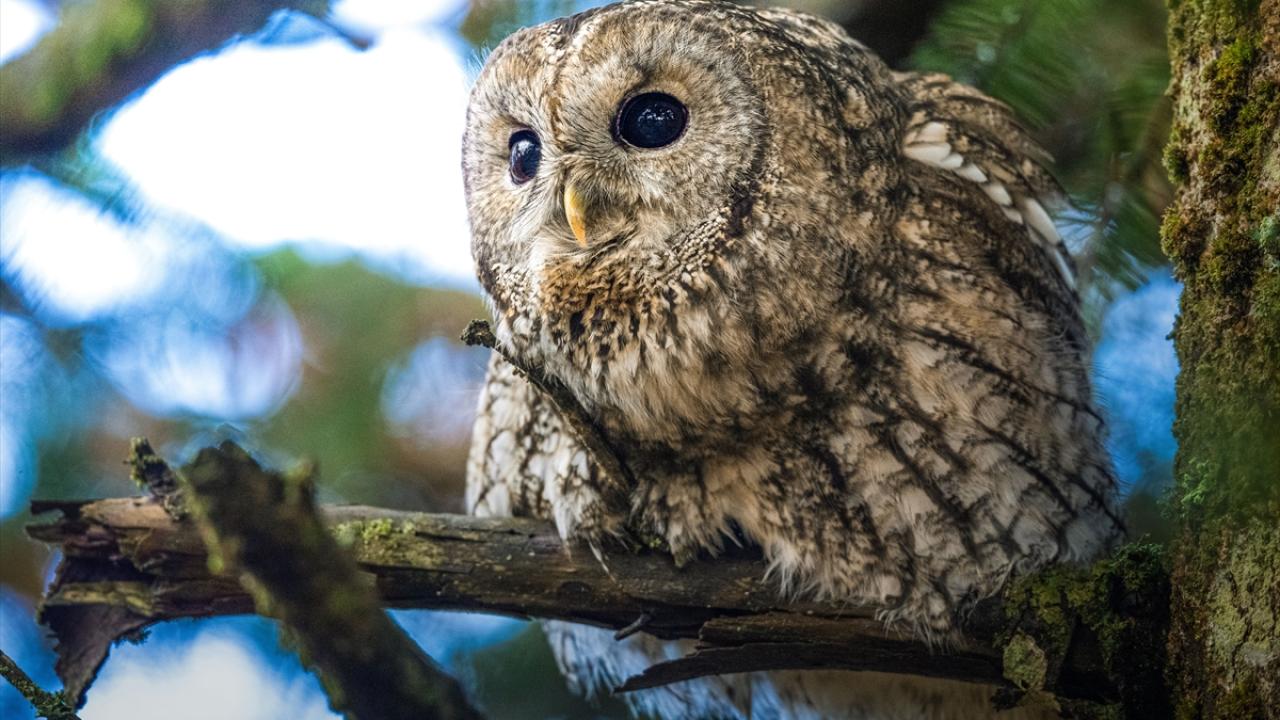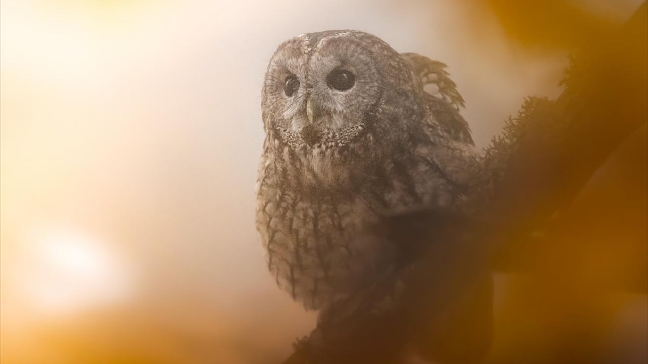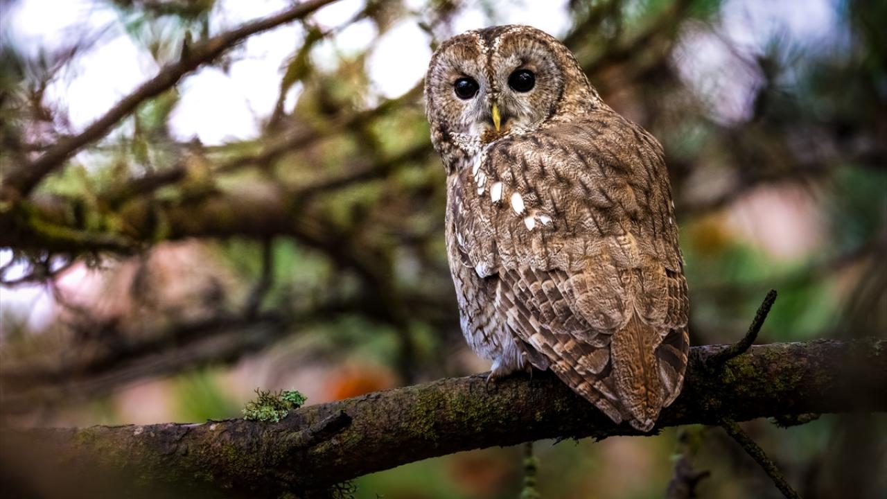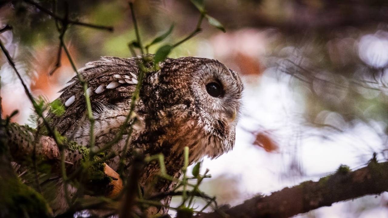 Bursa Uludağ'da sonbaharda ağaçların sararan yaprakları arasında dağın yerleşik türlerinden olan Alaca Baykuş görüntülendi.