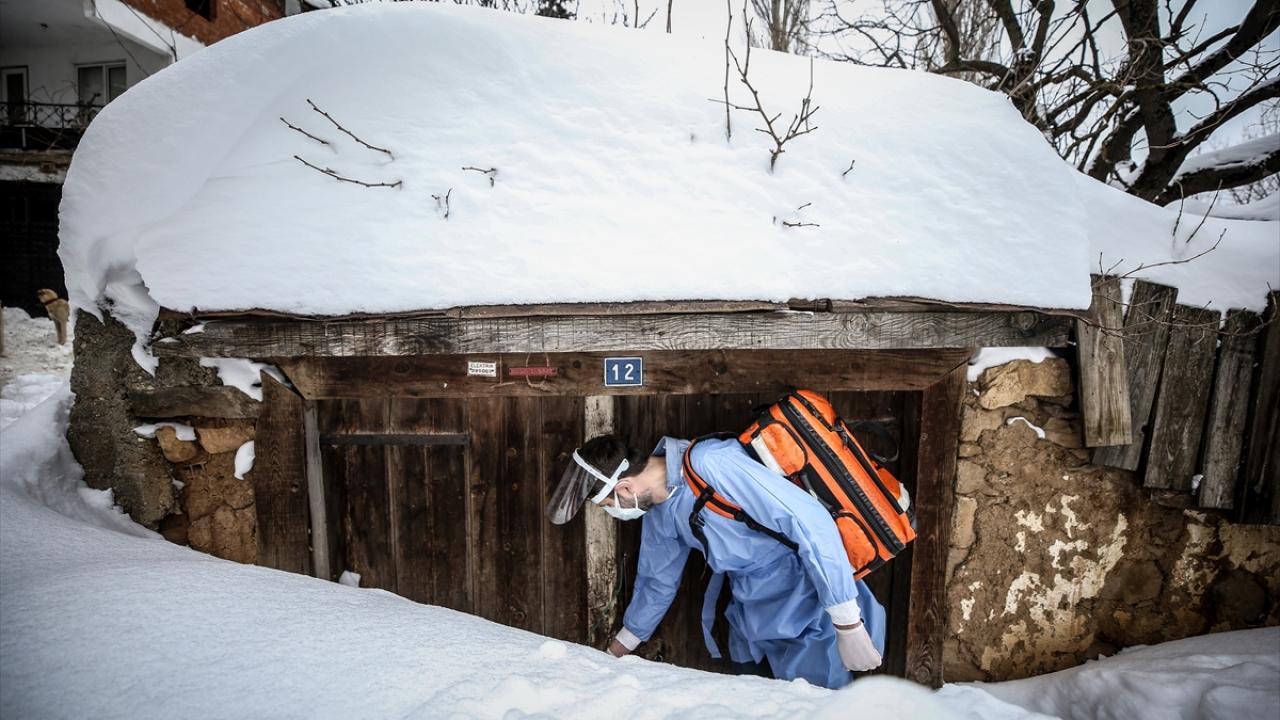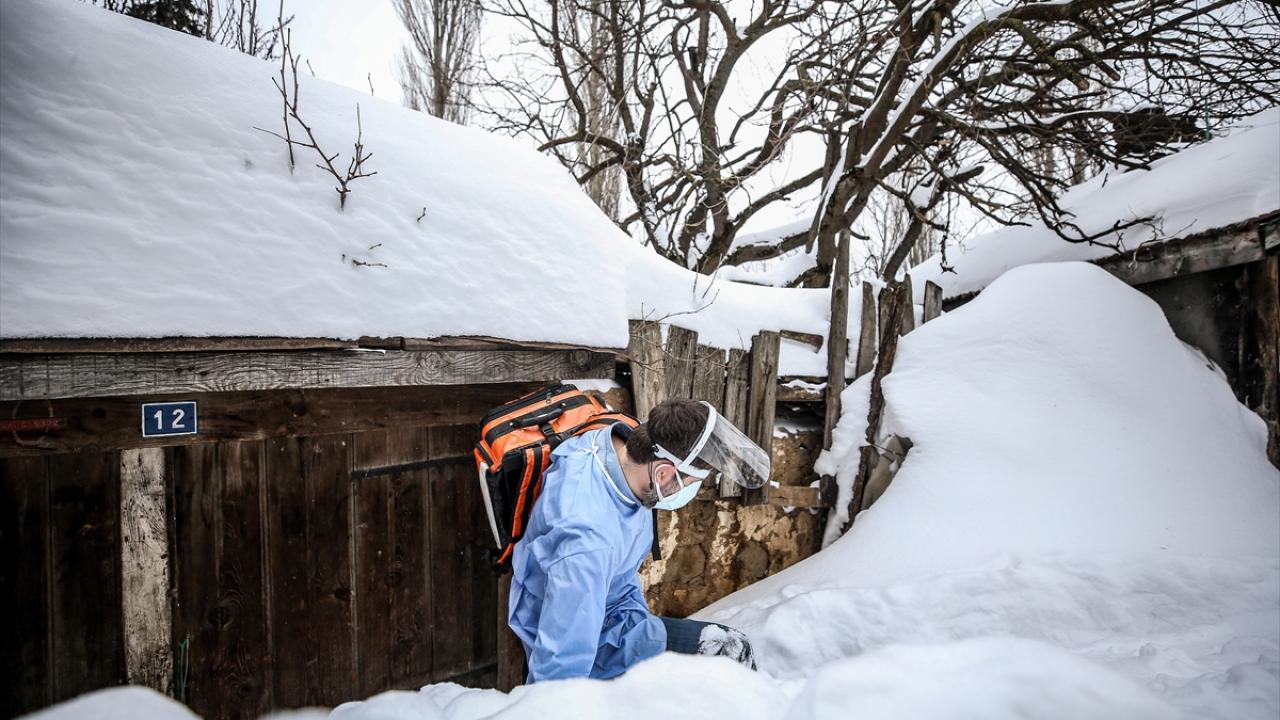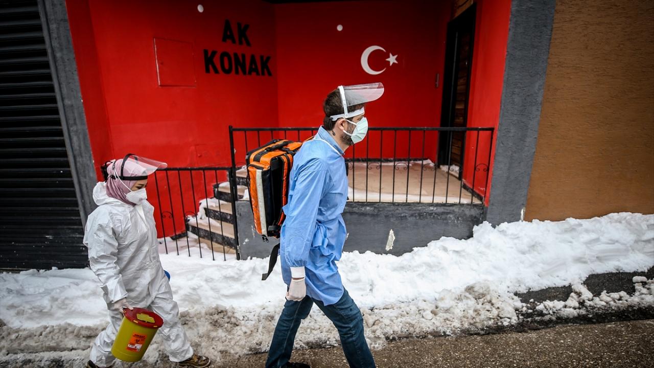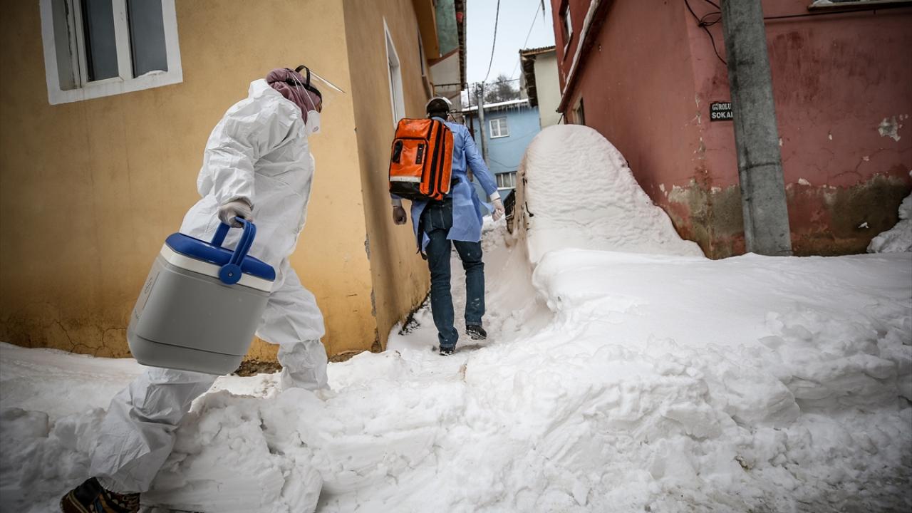 Bursa'da yeni tip koronavirüs (Covid-19) salgınıyla mücadele kapsamında çalışmalarına devam eden sağlık personeli, kırsal mahallelerde yaşayan ve hastaneye gelemeyen vatandaşlara hizmet vermek için olumsuz hava koşullarına rağmen görevlerini fedakarca yürütüyor.
