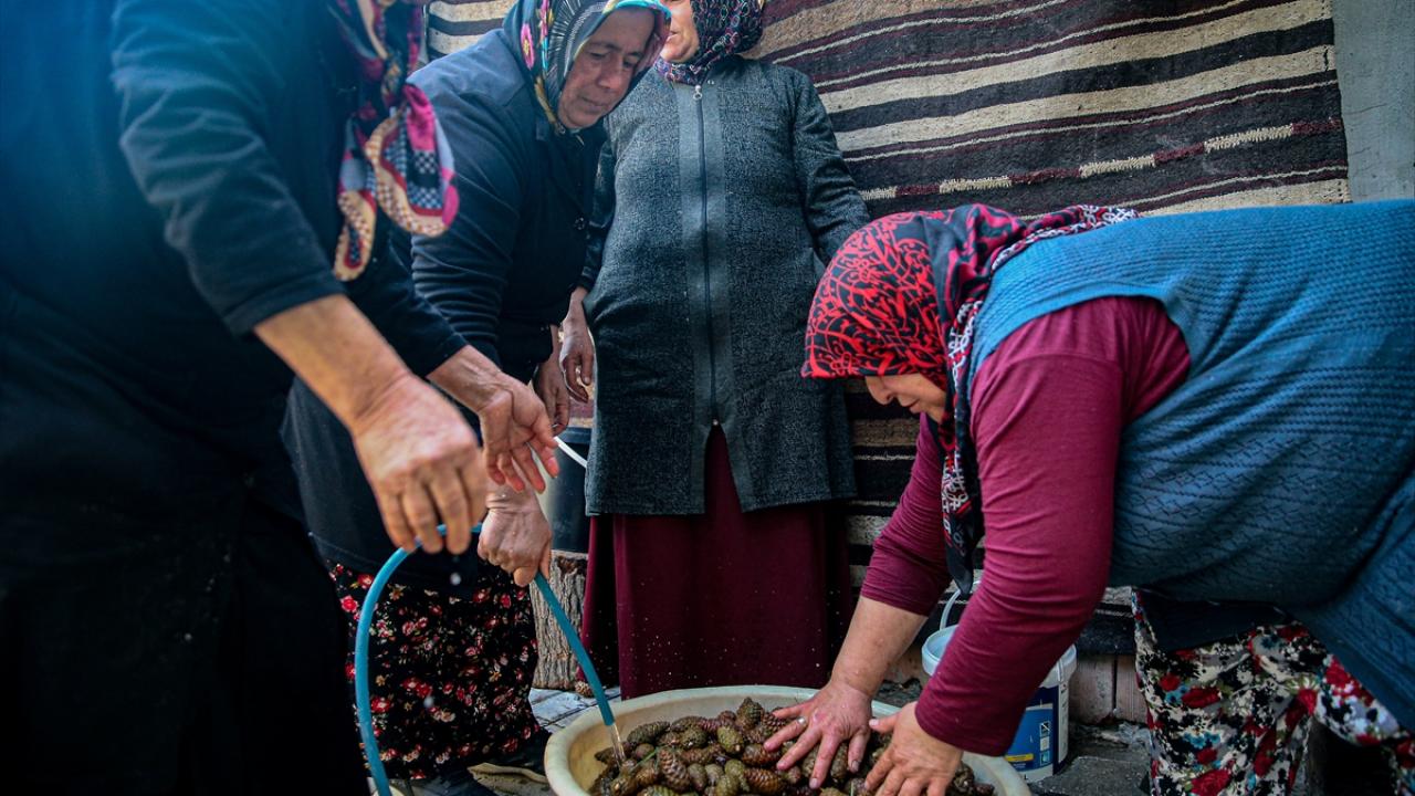 Uludağ'ın güney yamacında kurulu Bursa'nın Keles ilçesindeki kırsal mahallenin kadınları, eşlerinin ormandan topladığı kozalakları kazanlarda kaynatıp özünden pekmez elde ediyor.