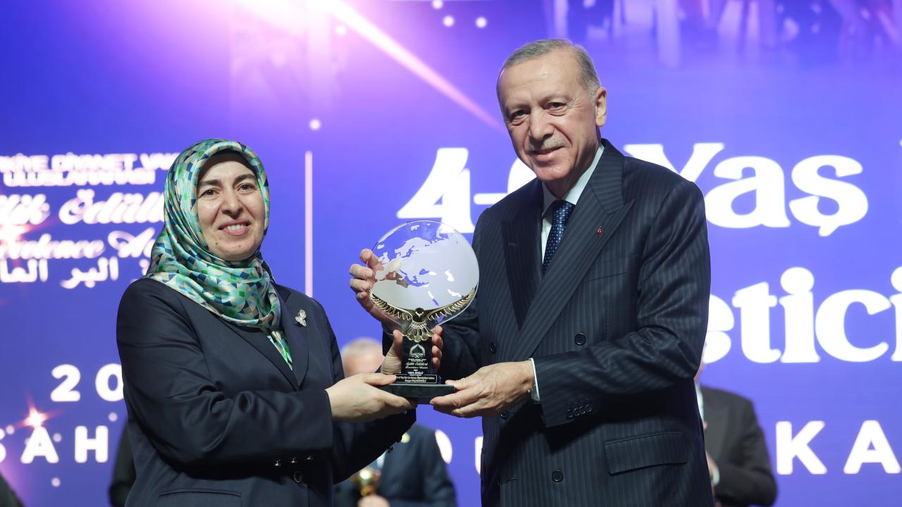 Cumhurbaşkanı Erdoğan, Yurt İçi Vefa Ödülüne layık görülen, Diyanet İşleri Başkanlığınca başlatılan 4-6 Yaş Kur`an Kurslarında Rize Sahil Camii öğreticilerinden Duygu Kaçaranoğlu`na ödülünü verdi.