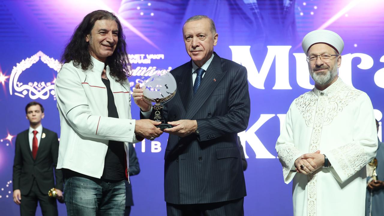 Cumhurbaşkanı Erdoğan, Yurt İçi Vefa Ödülüne layık görülen, TDV`nin yardım kampanyalarında, kurban bağışlarında, ihtiyaç sahiplerinin eksiklerinin tamamlanmasında yer alan sanatçı Murat Kekilli`ye ödülünü verdi.