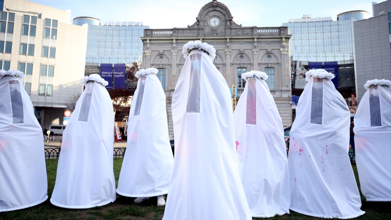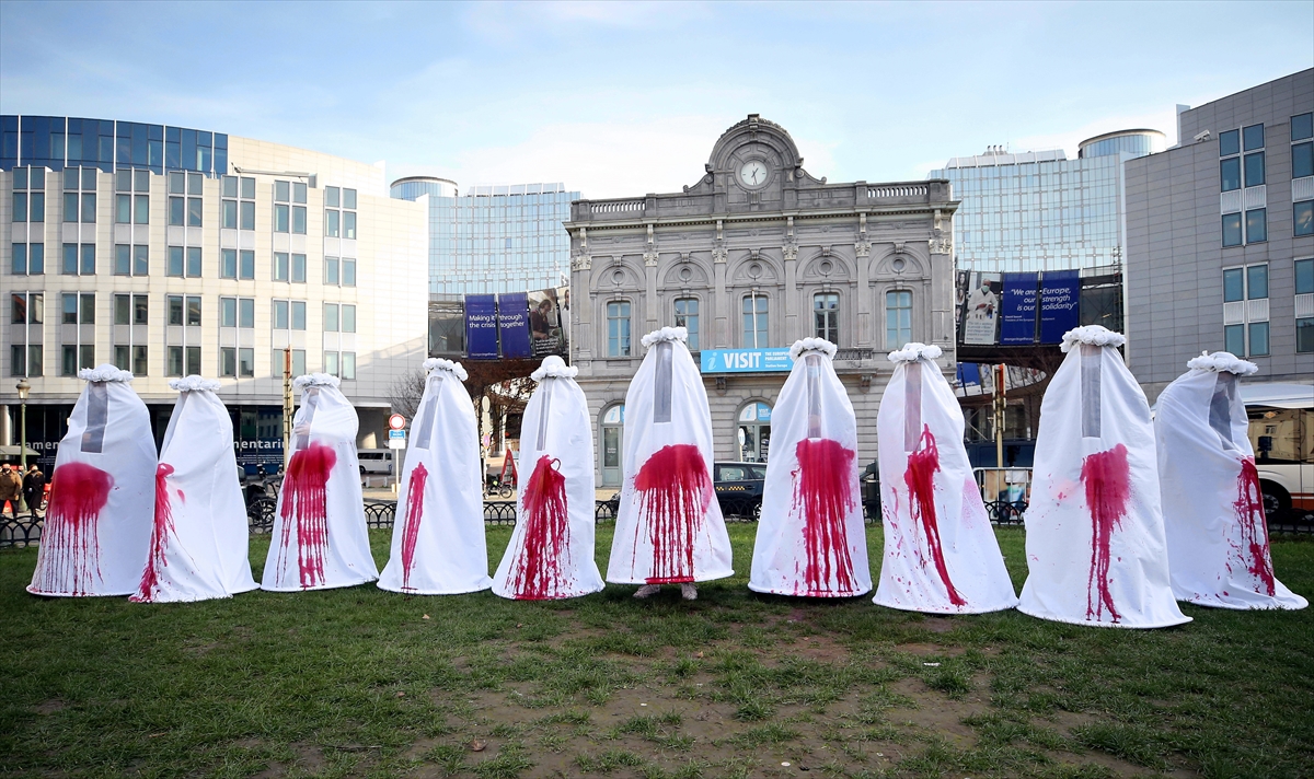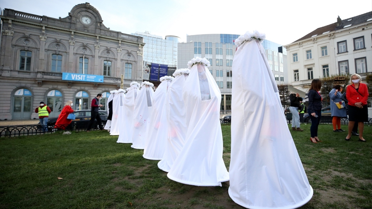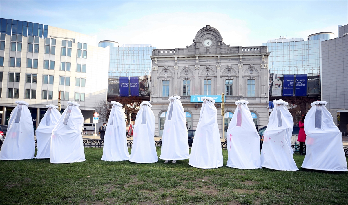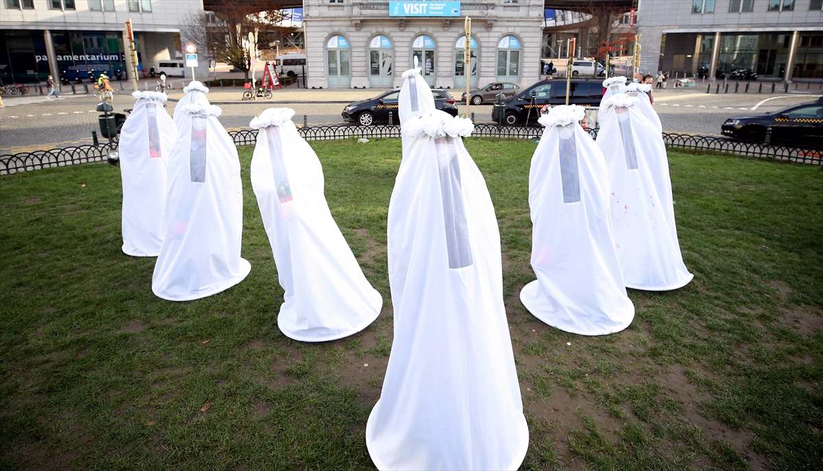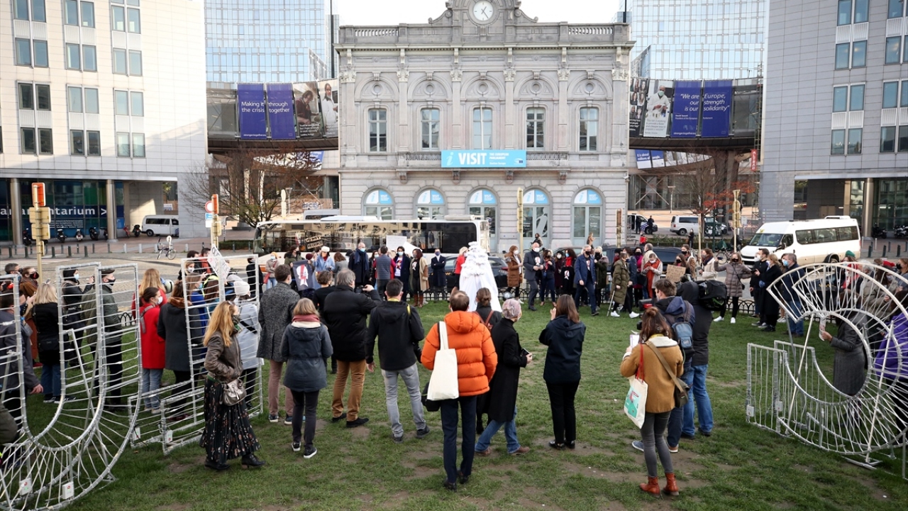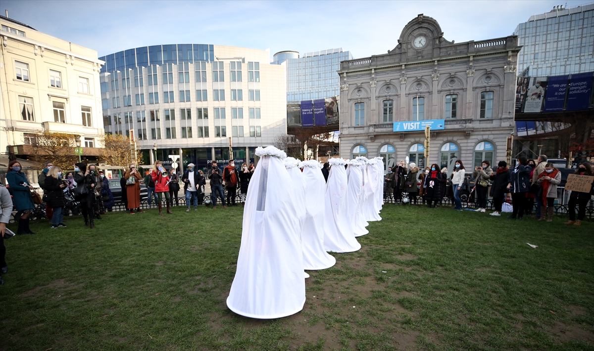 25 Kasım Uluslararası kadına yönelik şiddetle mücadele ve dayanışma gününde Brüksel'deki Avrupa Parlamentosu (AP) önünde gösteri düzenlendi.