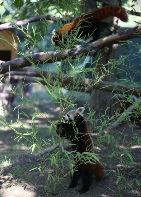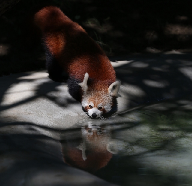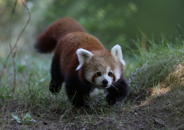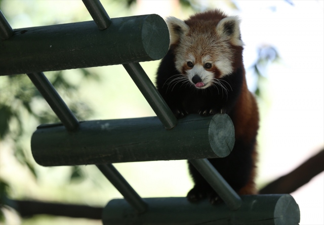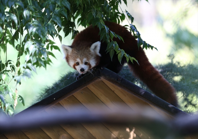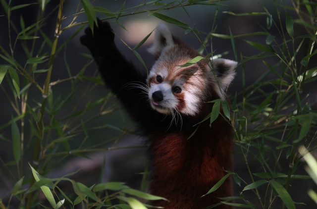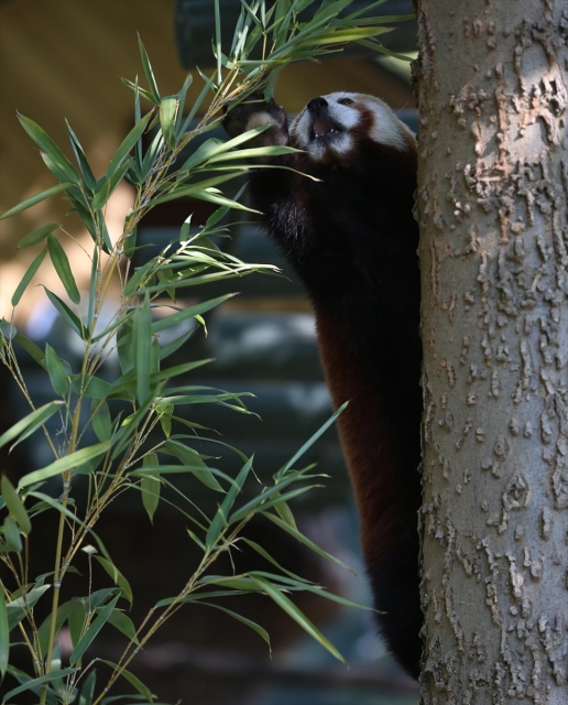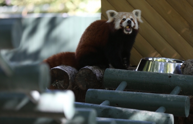 Uluslararası Kırmızı Panda Günü dolayısıyla Bursa Hayvanat Bahçesi'ndeki 2 kırmızı pandanın beslenmesi görüntülendi. Darıca Hayvanat Bahçesi'nden yaklaşık iki hafta önce getirilen 2 kırmızı panda, bambu yapraklarıyla besleniyor.