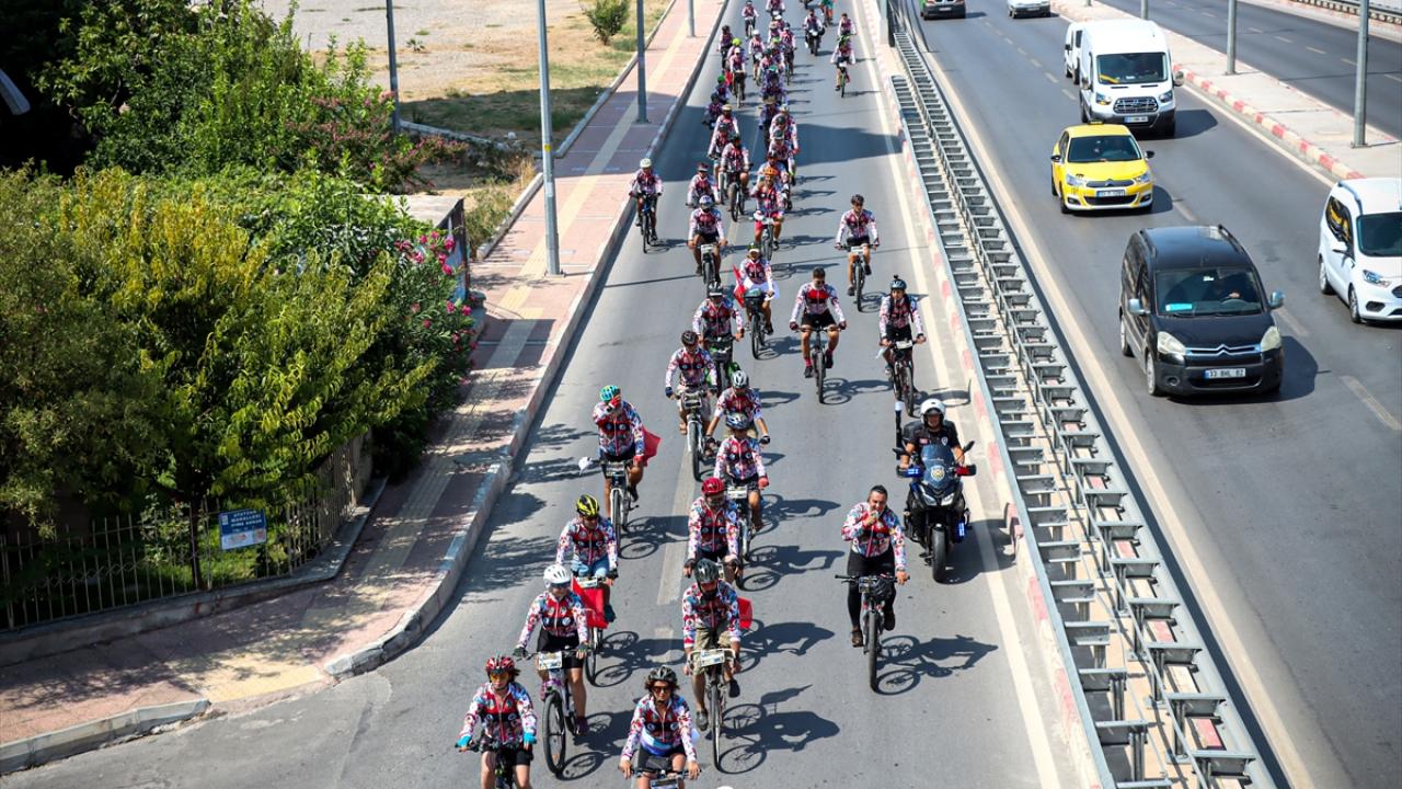 Mezitli Belediyesi önünde mola veren bisikletçiler, burada buluştukları Belediye Başkanı Neşet Tarhan`a destekleri için teşekkür etti.