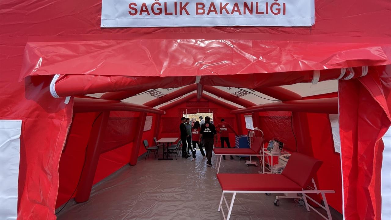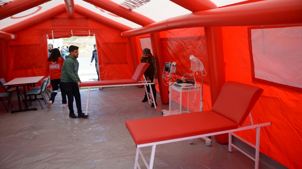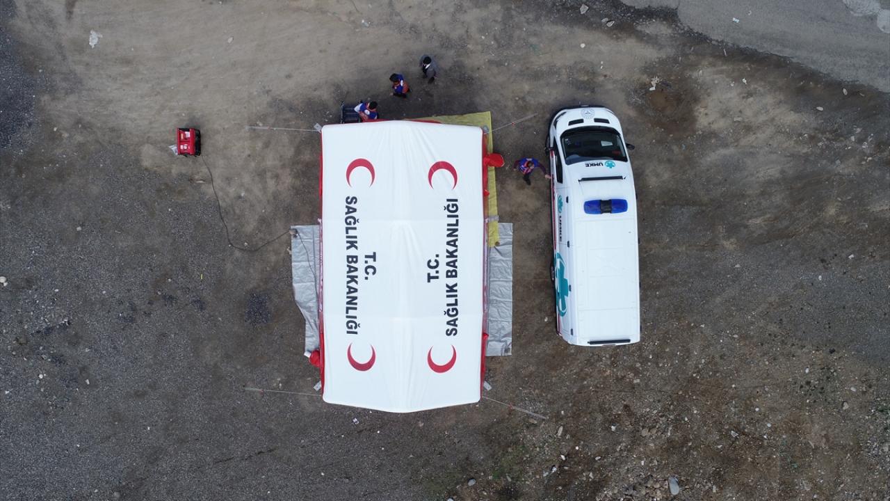Kurulan çadırlara tıbbi müdahale için gereken malzemeler yerleştirilirken, 10 havalı çadırda 30 ile 40 hastaya bir hastanenin acil servisinde bulunan tüm ekipmanlarla ilk tedavi sağlanacak.