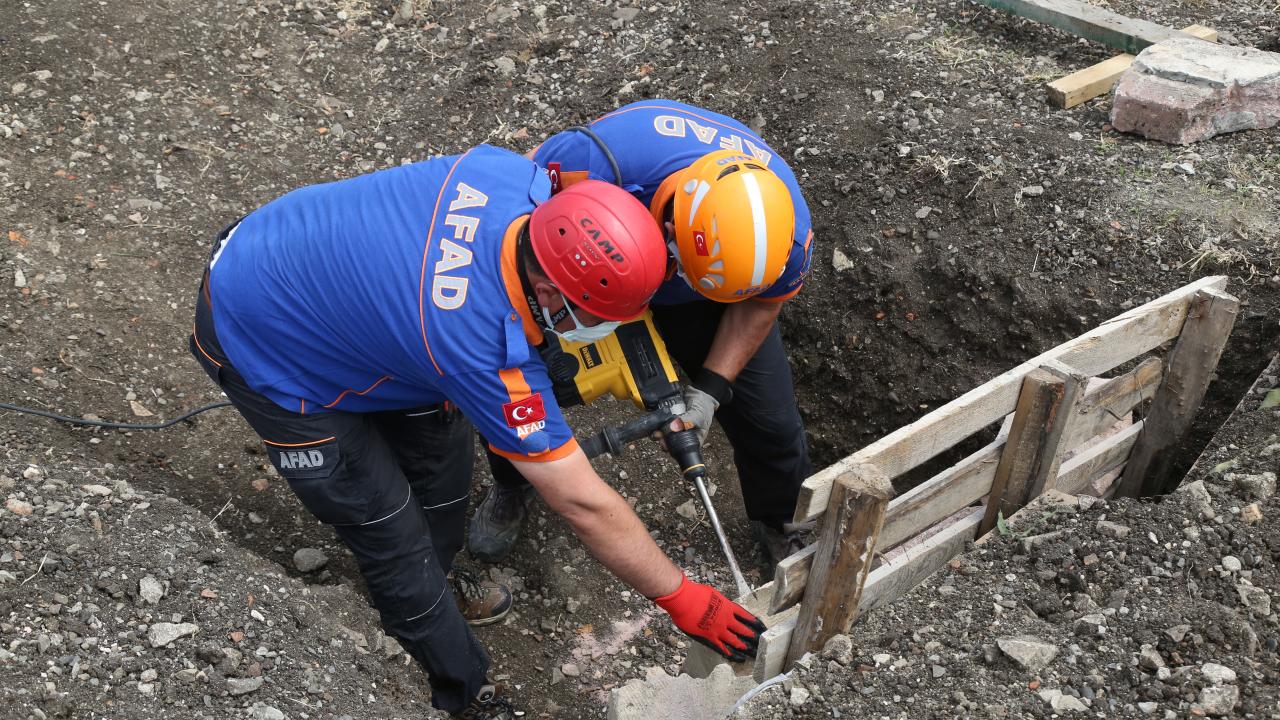 Daha sonra bir evin yıkıldığı ve içinde mahsur kalanların olduğu ihbarı üzerine ekipler, enkazdan yaralıları çıkardı.