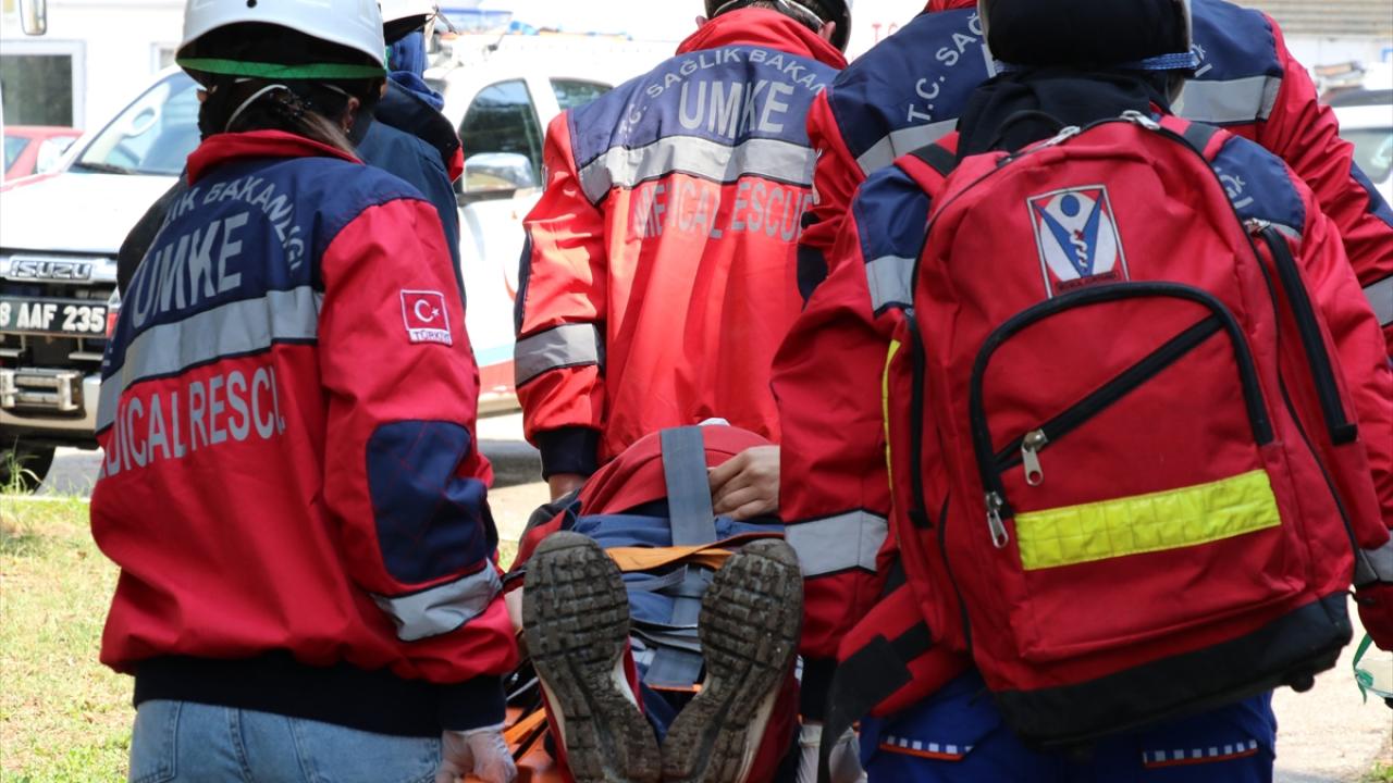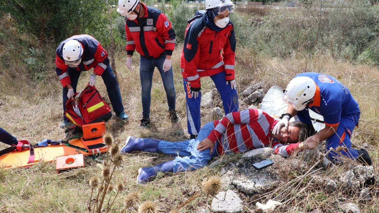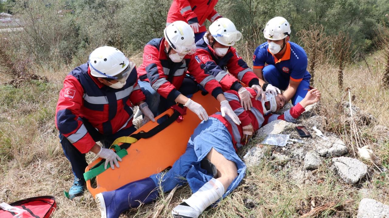 Eğitim kapsamında gerçekleştirilen tatbikatta, senaryo gereği kaza yapan araçtan kurtarma, göçük altından kurtarma ve ormanlık alanda yüksekten düşme olayına müdahale edildi.