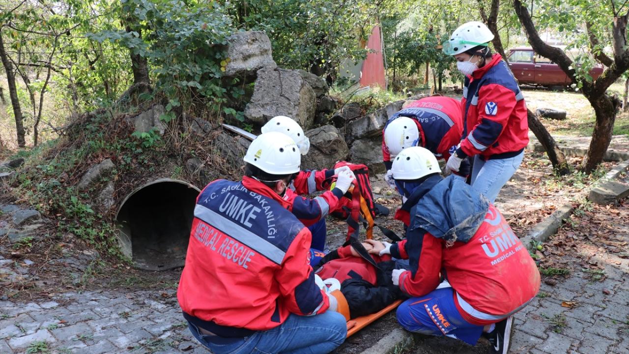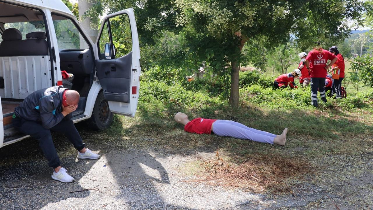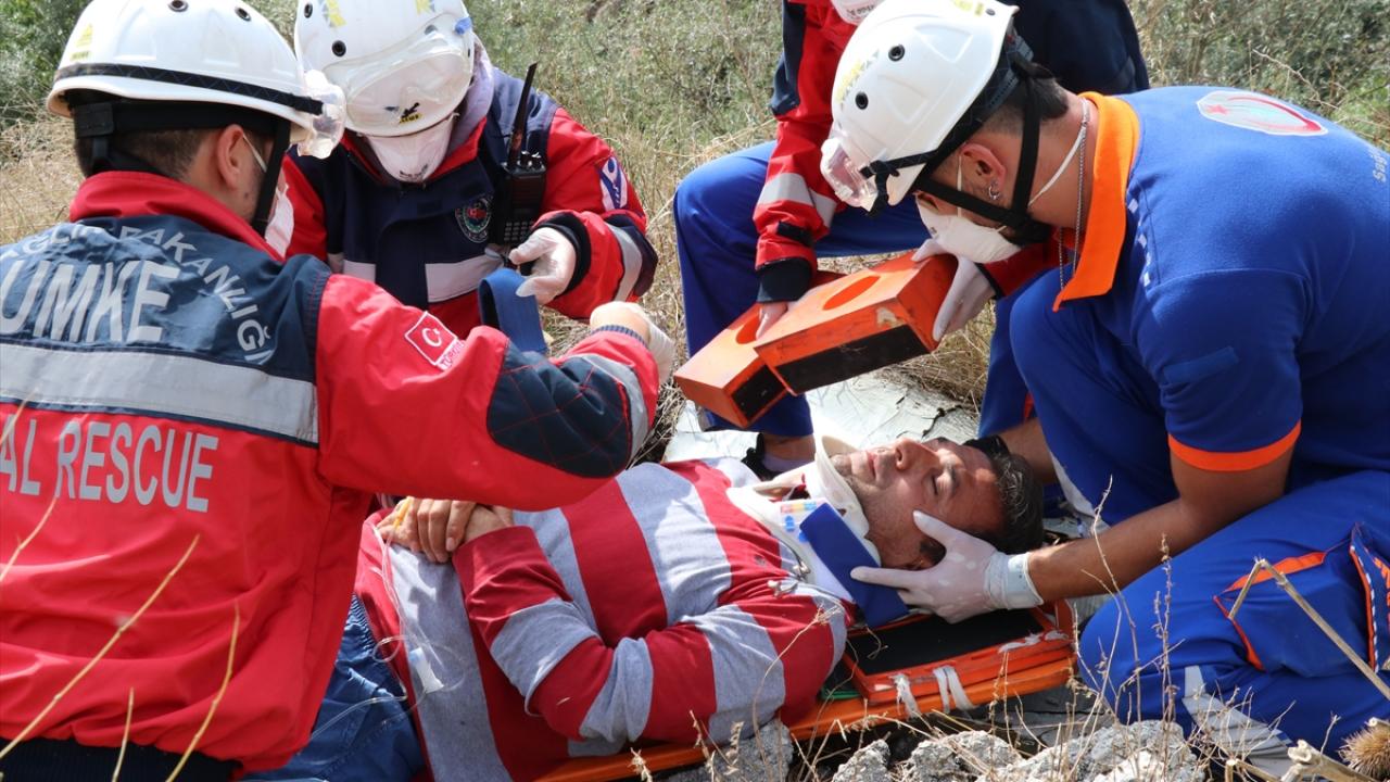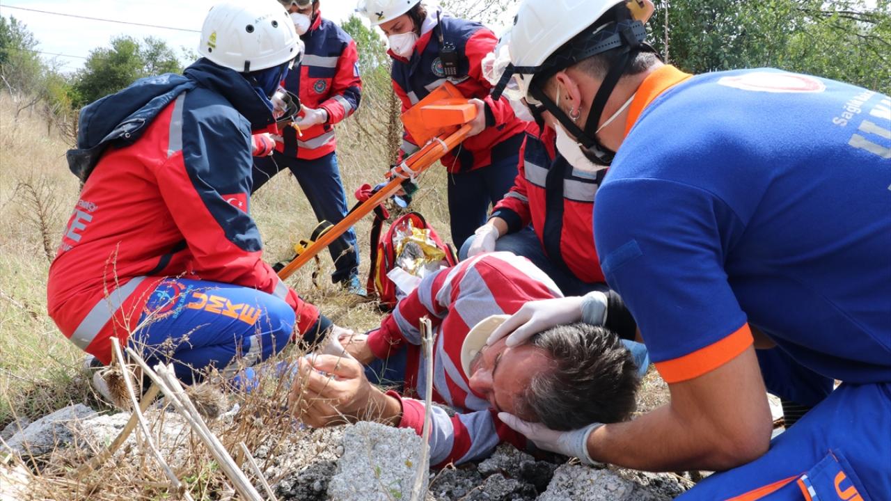 Eğitim kapsamında gerçekleştirilen tatbikatta, senaryo gereği kaza yapan araçtan kurtarma, göçük altından kurtarma ve ormanlık alanda yüksekten düşme olayına müdahale edildi.