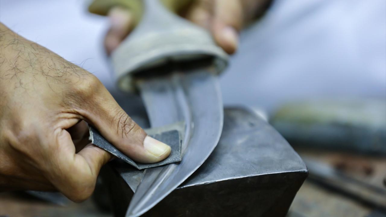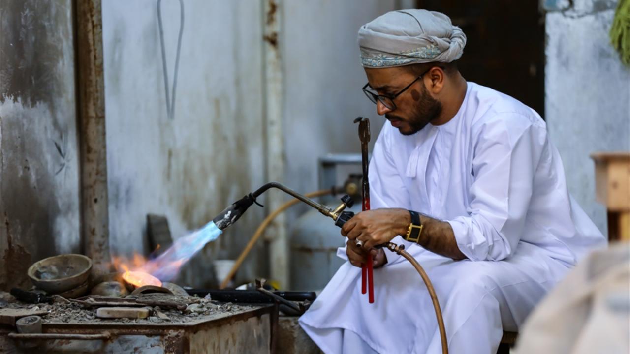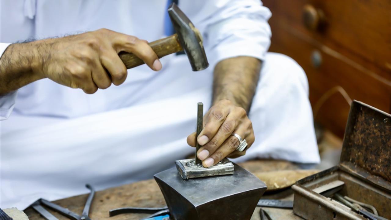 Umman’ın geleneksel gümüş hançer imalatıyla bilinen Sur kentindeki Abdullah el-Saig, küçük yaşlardan itibaren bu meslekle uğraşıyor.
