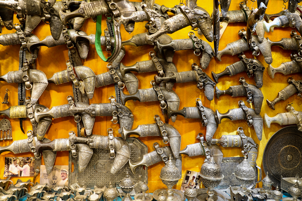 Ummanlı zanaatkarların maharetli ellerinde özenle işlenen hançerler erkekler tarafından, kostümün bir tamamlayıcısı olarak, tüm sosyal ve resmi ortamlarda kullanılıyor.