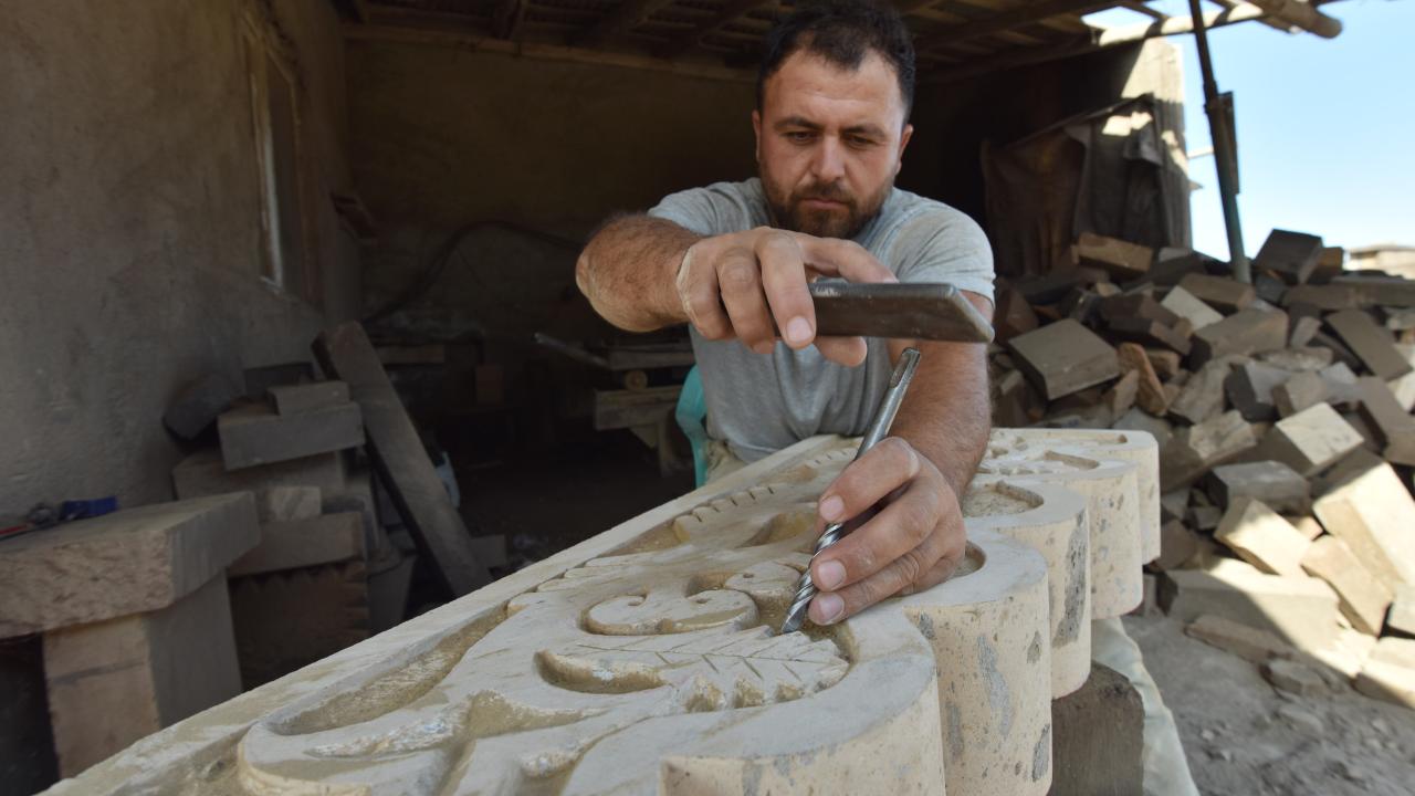 Bitlis’in Ahlat ilçesindeki taş ocaklarında büyük kütleler halinde çıkarılan taşlar, kesilip ebatlandırıldıktan sonra ilçedeki atölyelerde taş ustaları tarafından Selçuklu ve Osmanlı motiflerinin yanı sıra çeşitli desenler işleniyor.