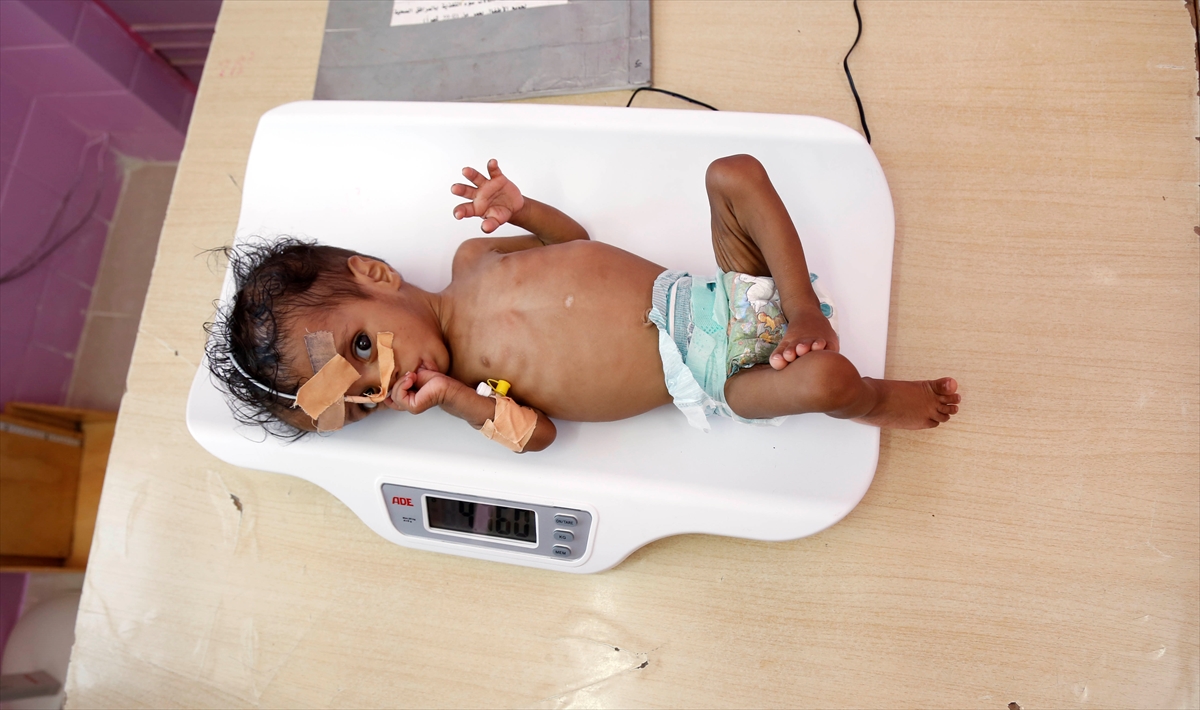 Yetersiz beslenme sorunu yaşayan Yemenli çocuklar, başkent Sana`da Sabeen Hastanesi`ndeki Yetersiz Beslenmeyle Mücadele bölümünde kısıtlı imkanlarla tedavi görüyor.