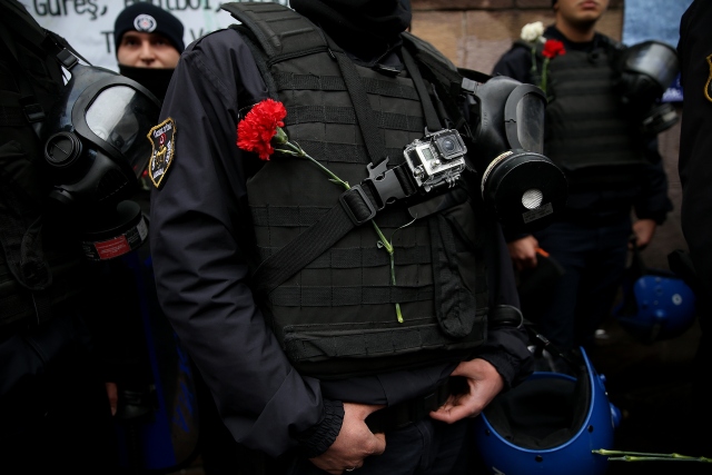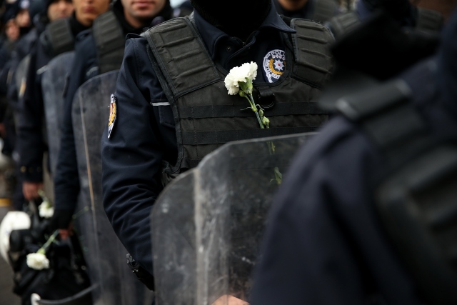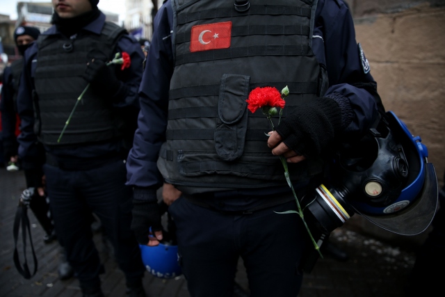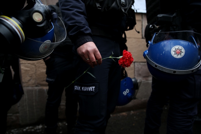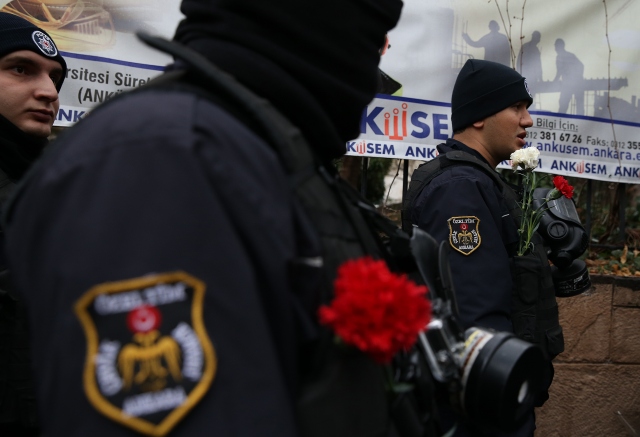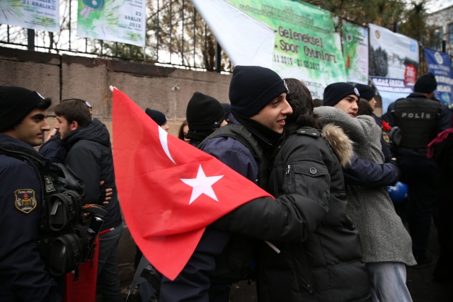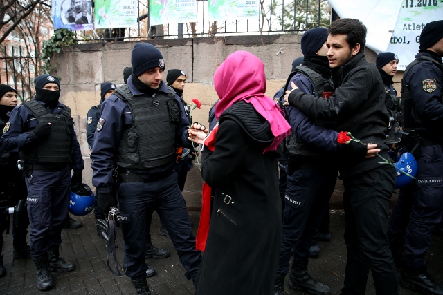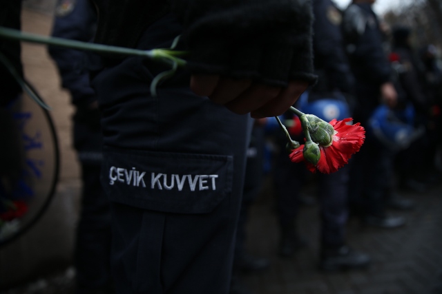 Ankara Üniversitesi öğrencileri, İstanbul'daki bombalı terör saldırılarını protesto etmek amacıyla yürüyüş düzenledi. Yürüyüşe katılan öğrenciler, güvenliği sağlayan polislere karanfil verdi.