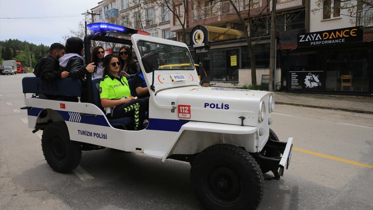 Öte yandan, nostaljik araçla seyahat eden öğrencilerine de trafik güvenliği haftası ile ilgili bilgi verildi.