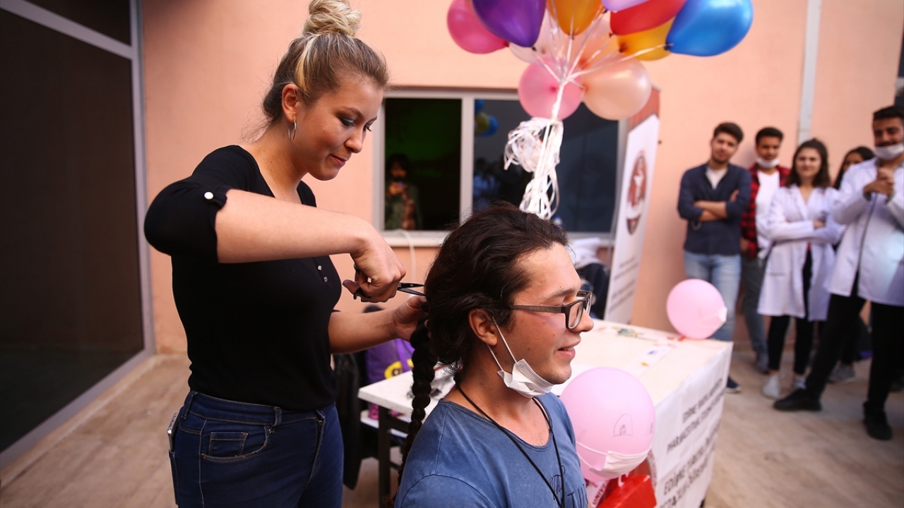 Mühendislik fakültesi öğrencisi Mehmet Dinç ise etkinlikte, kanser hastalarına peruk yapımında kullanılması için 4 yıldır uzattığı saçlarını kestirerek bağışladı.
