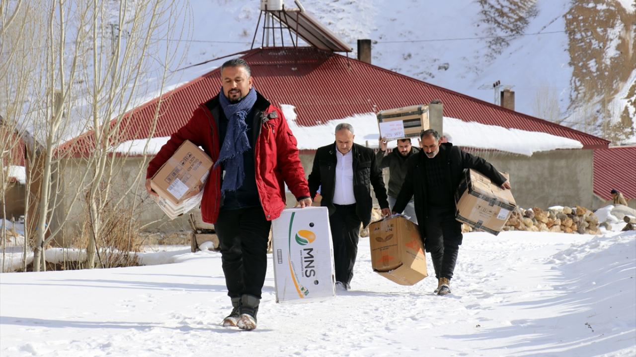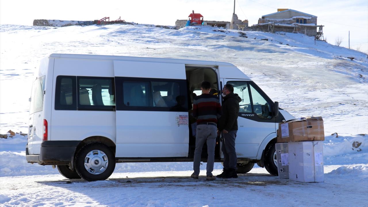 İl merkezine kargoyla gelen kolileri minibüse yükleyen Yiğit, karlı dağları ve zorlu yolları aşarak yardım malzemelerini ilçeye yaklaşık 30 kilometre uzaklıktaki Büvetli, Karataş, Kotancı ve Gedik köylerine ulaştırdı.