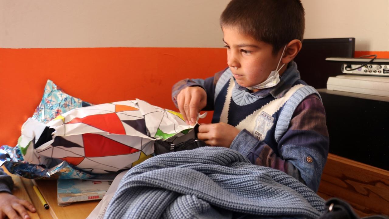 Öğrencilerden Ayfer Gürses ise hediye paketlerini çok beğendiklerini anlatarak, "Bu hediyeleri bize gönderen ağabeylerim ve ablalarıma çok teşekkür ederim. Çok mutlu olduk ve bugün bizim en mutlu günümüz. İyi ki varsınız." dedi.