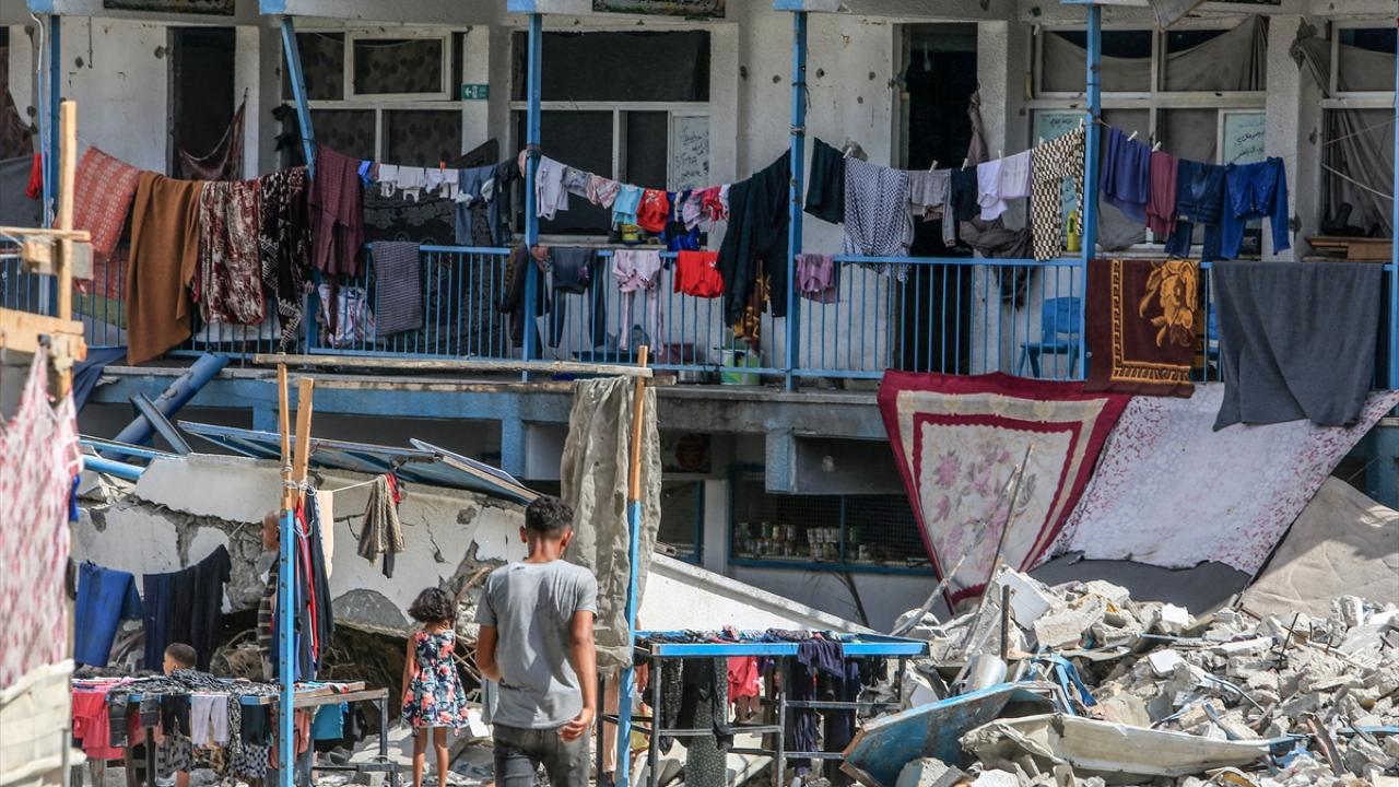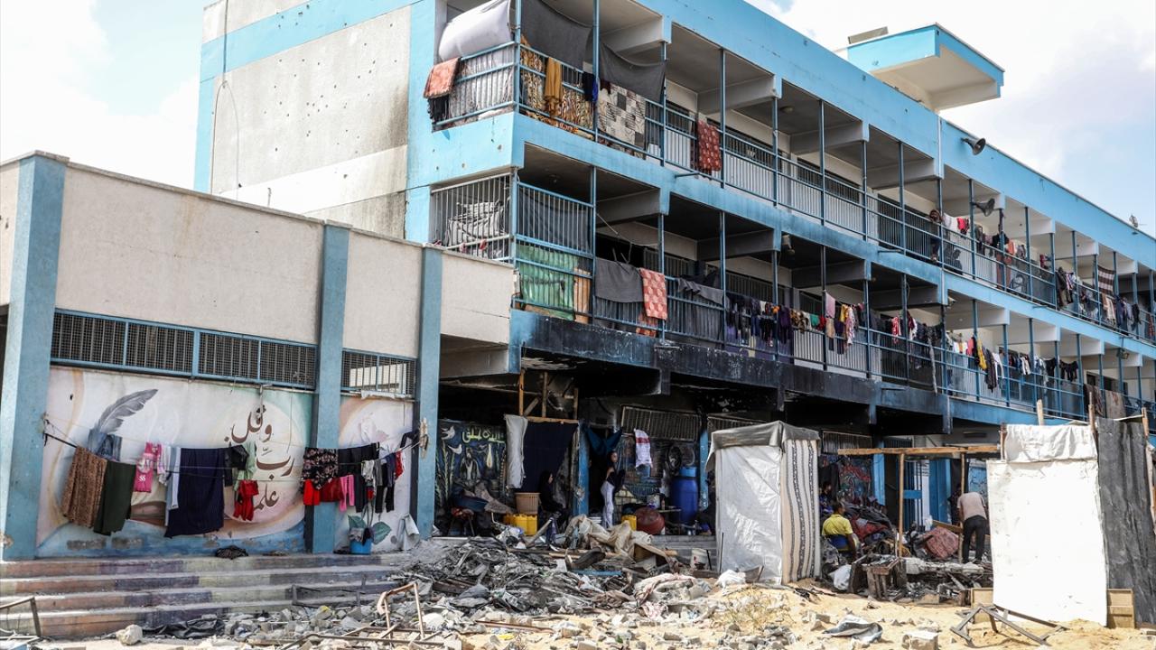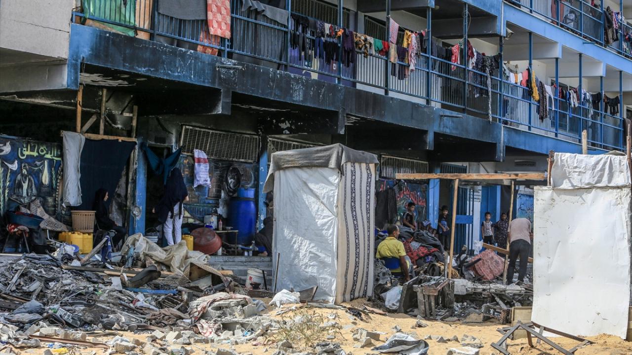 İsrail ordusunun saldırısında ağır hasa gören Han Yunus kentinde bulunan Birleşmiş Milletler Yakın Doğu'daki Filistinli Mültecilere Yardım ve Çalışma Ajansı'na (UNRWA) ait bir okul, yerinden edilenlerin barınağı haline geldi.
