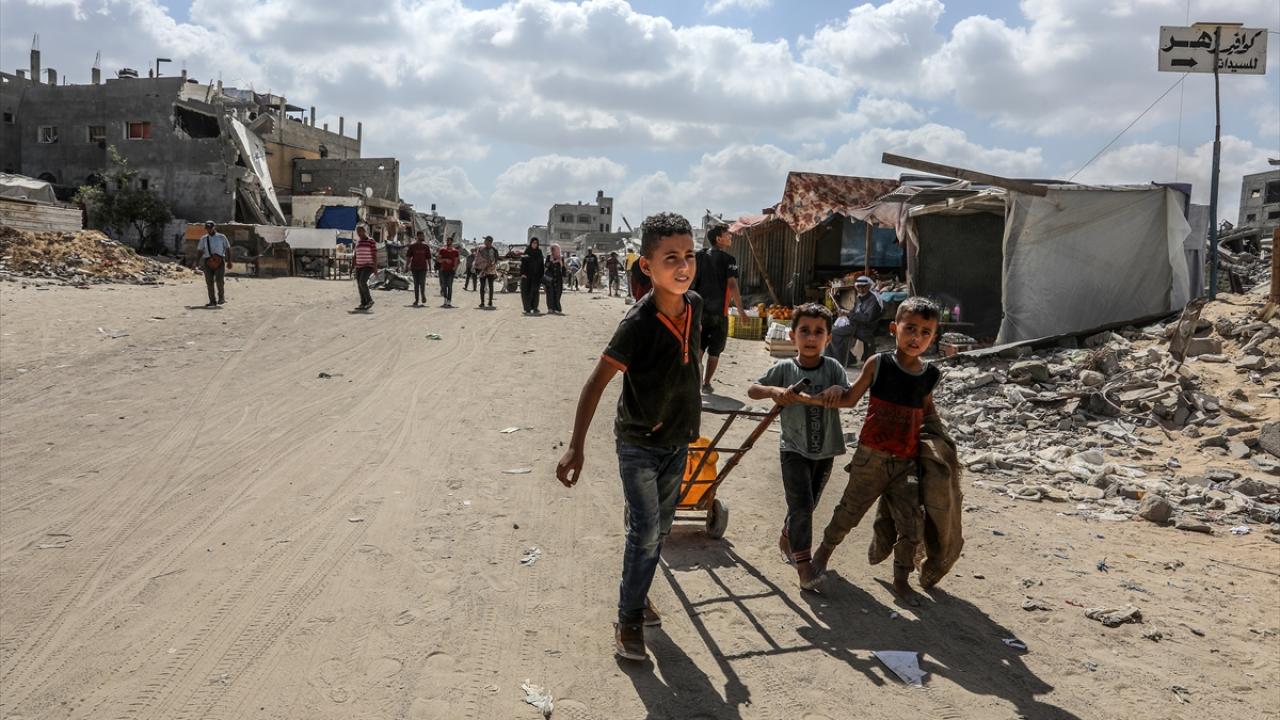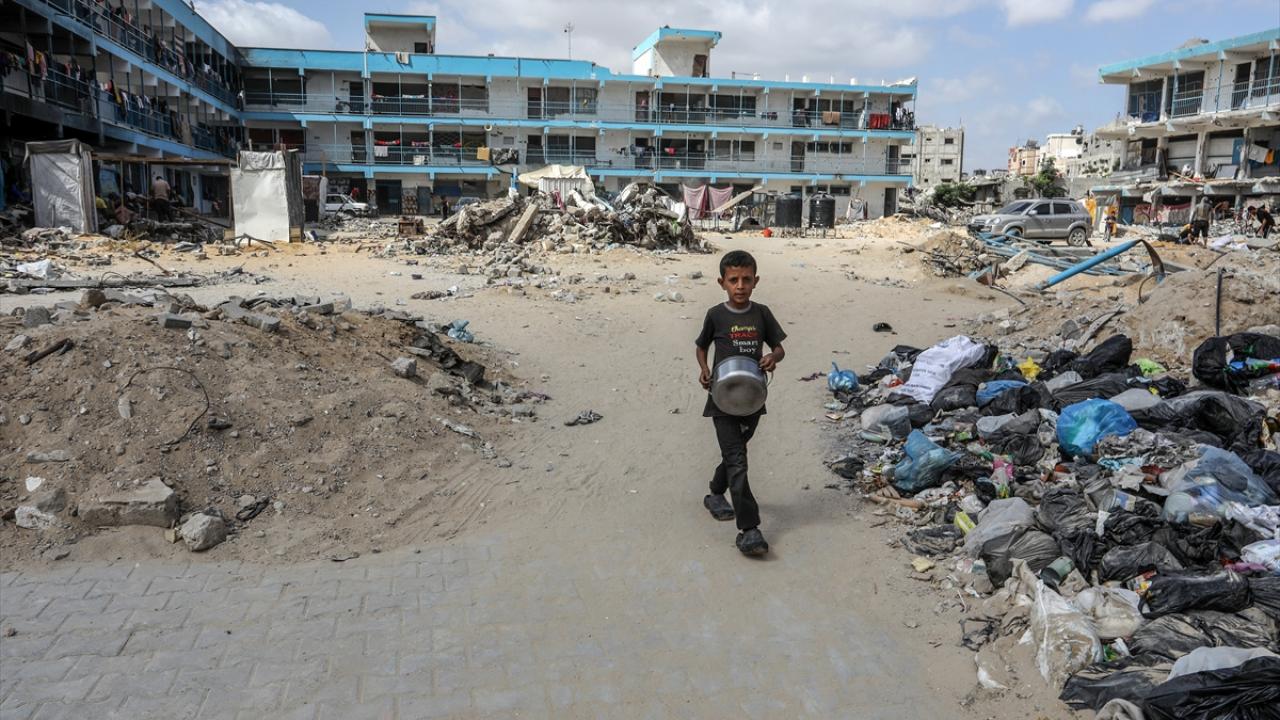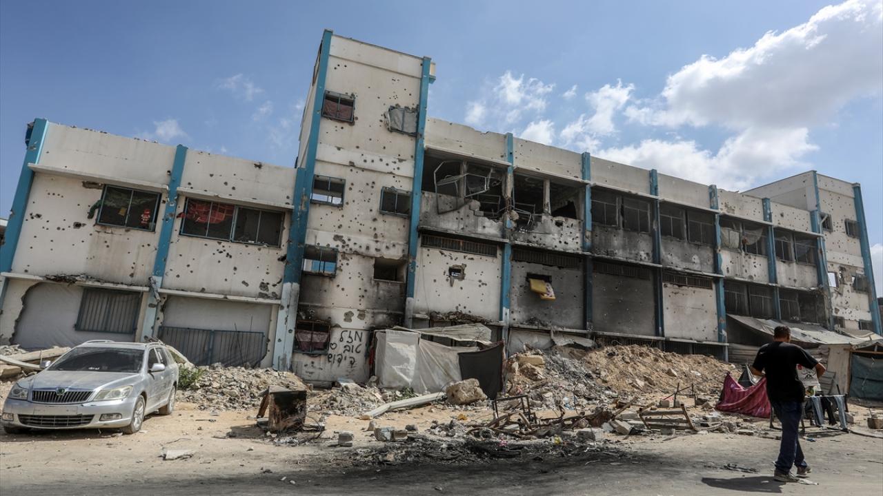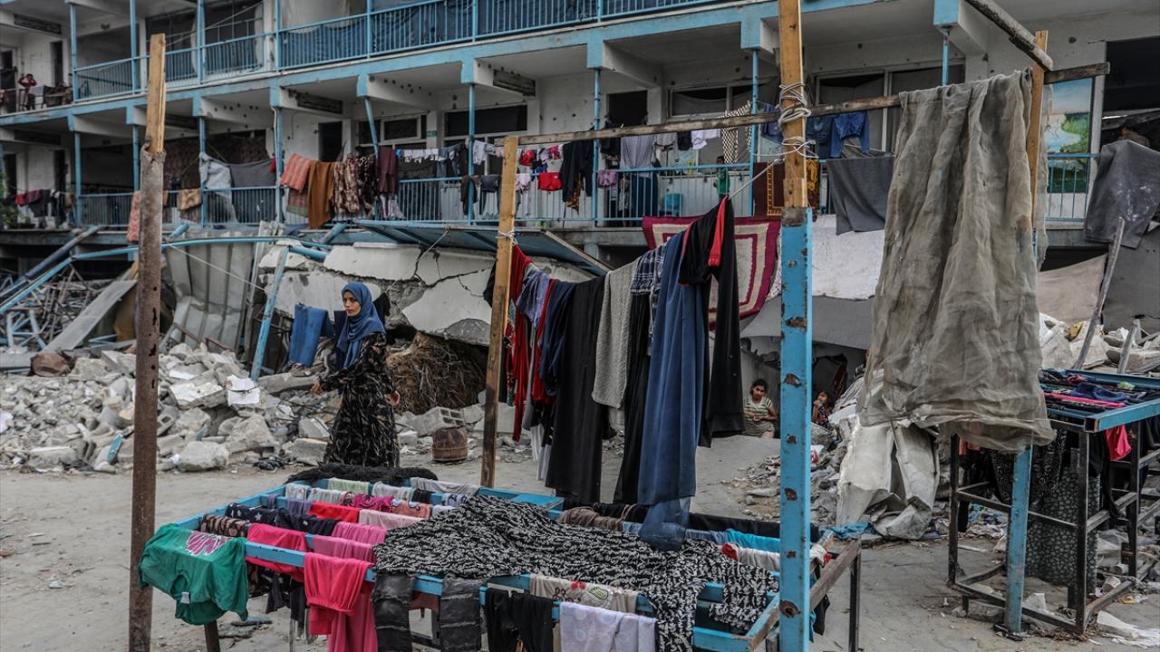 İsrail ordusunun saldırısında ağır hasa gören Han Yunus kentinde bulunan Birleşmiş Milletler Yakın Doğu'daki Filistinli Mültecilere Yardım ve Çalışma Ajansı'na (UNRWA) ait bir okul, yerinden edilenlerin barınağı haline geldi.