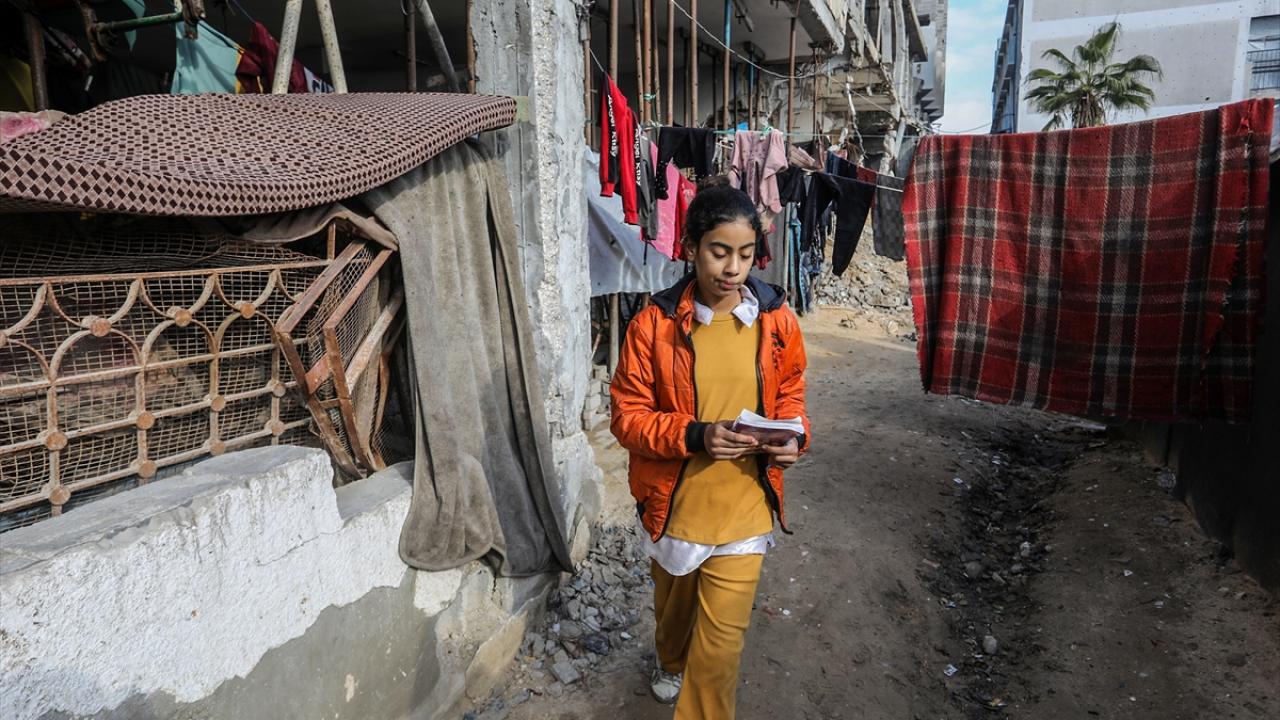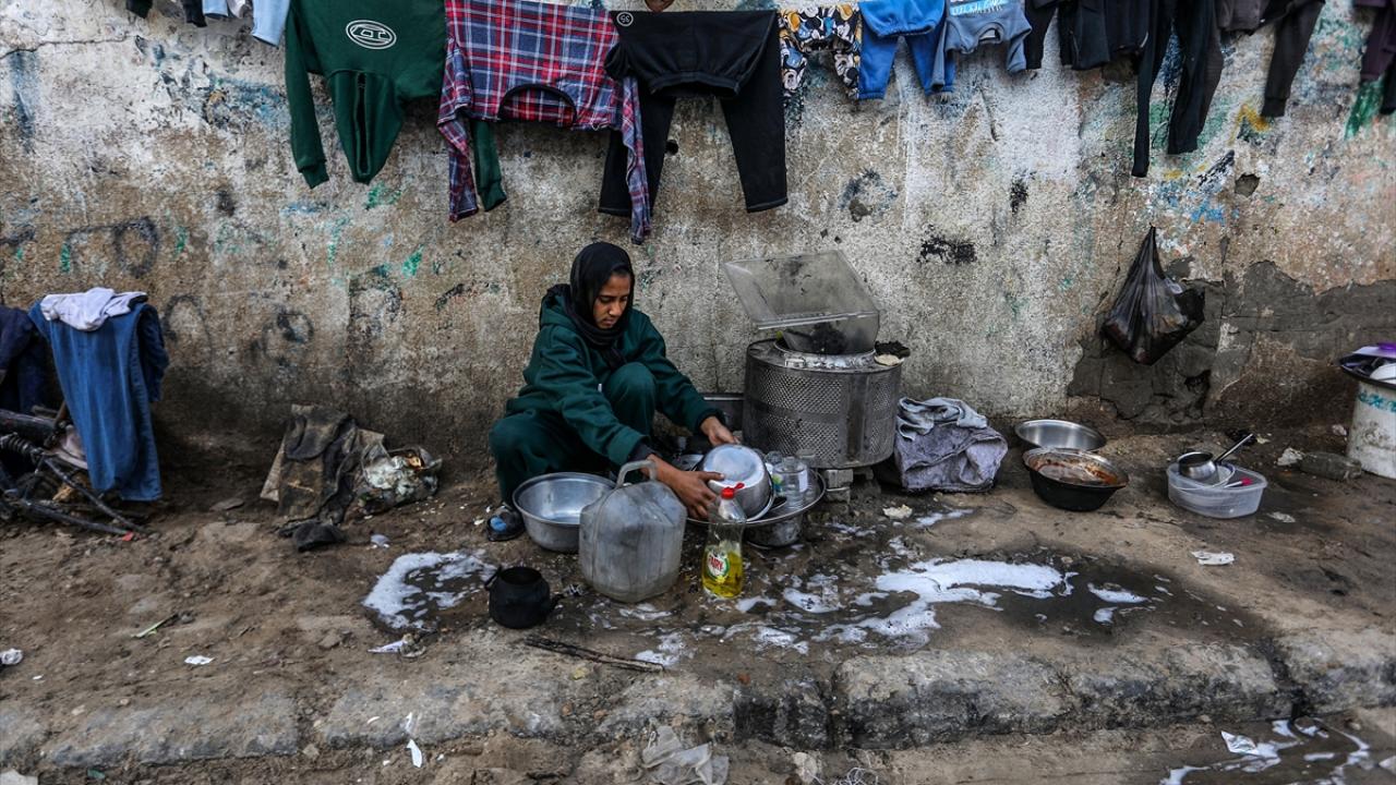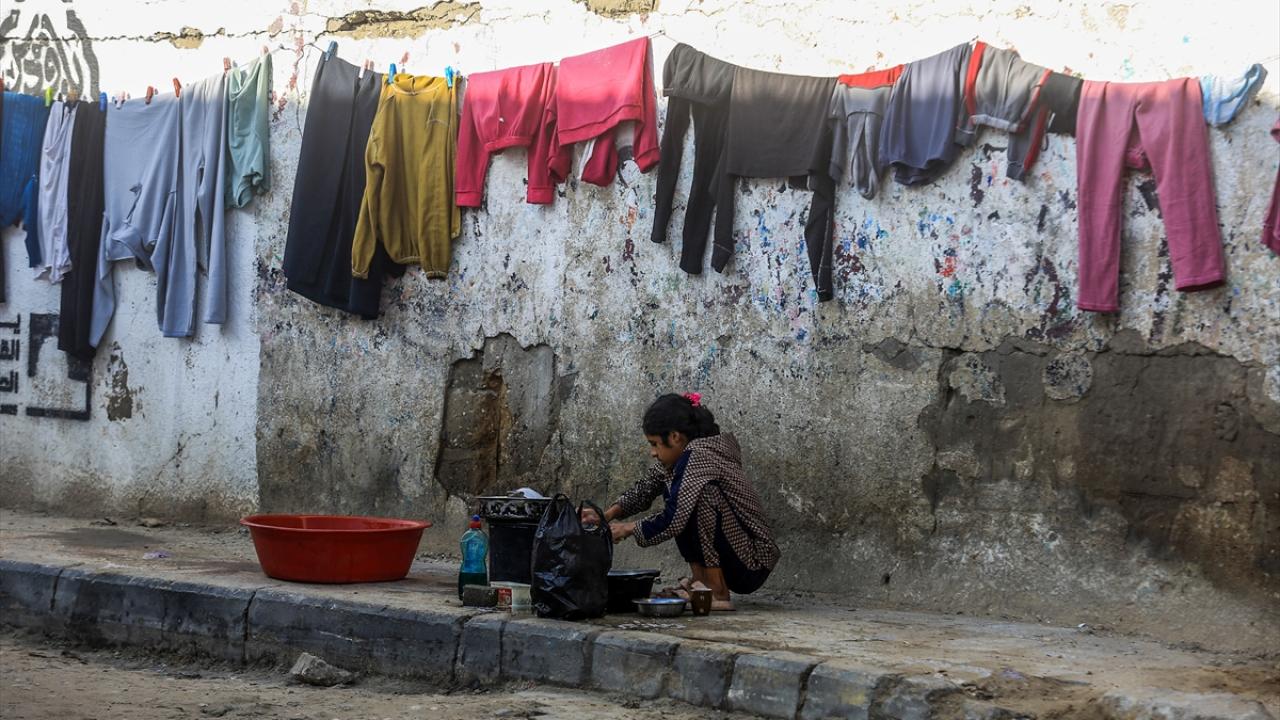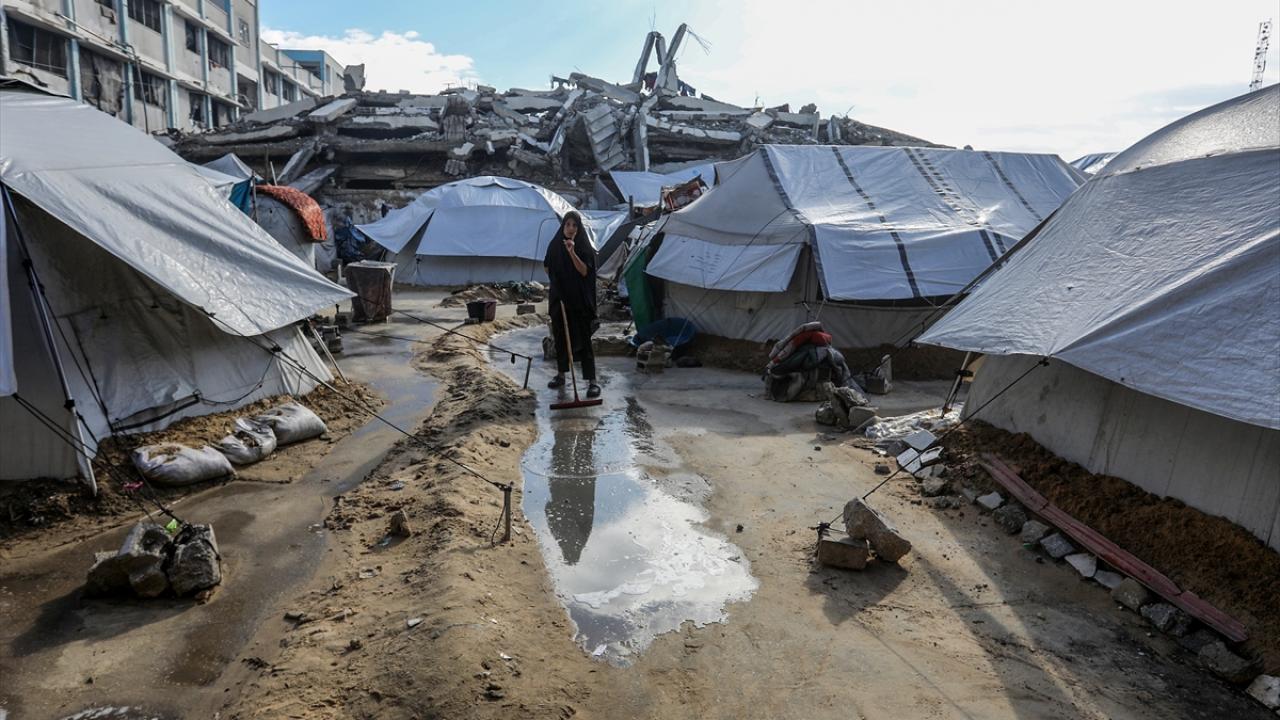 İsrail ordusunun saldırılarında evleri yıkılan ve “sarı hat” uygulaması nedeniyle mahallelerine dönemeyen Filistinliler, Gazze Şeridi’nin güneyindeki Han Yunus kentindeki UNRWA’ya ait okullarda ve çadırlarda yaşamlarını sürdürüyor.