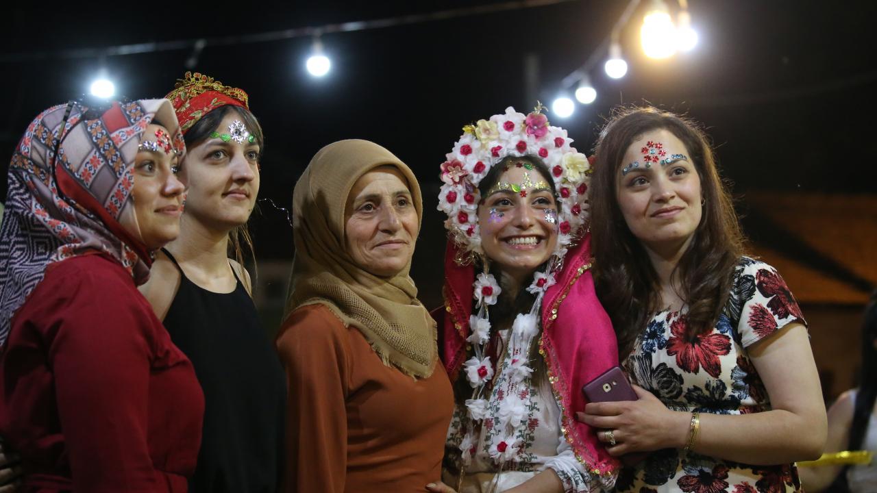 Pelin`in kardeşi Mert ve eşi Deniz Şentürk için köydeki evlerinin bahçesinde düzenlenen "pullama (boyama) gecesi" renkli görüntülere sahne oldu.